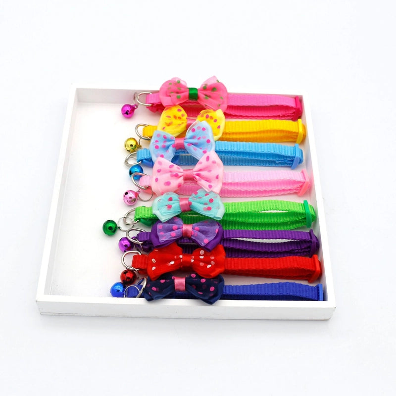 Pet Collar Multi-color Optional Puppy Teddy Collar Kitten Bow Collar Colorful Bell Adjustable