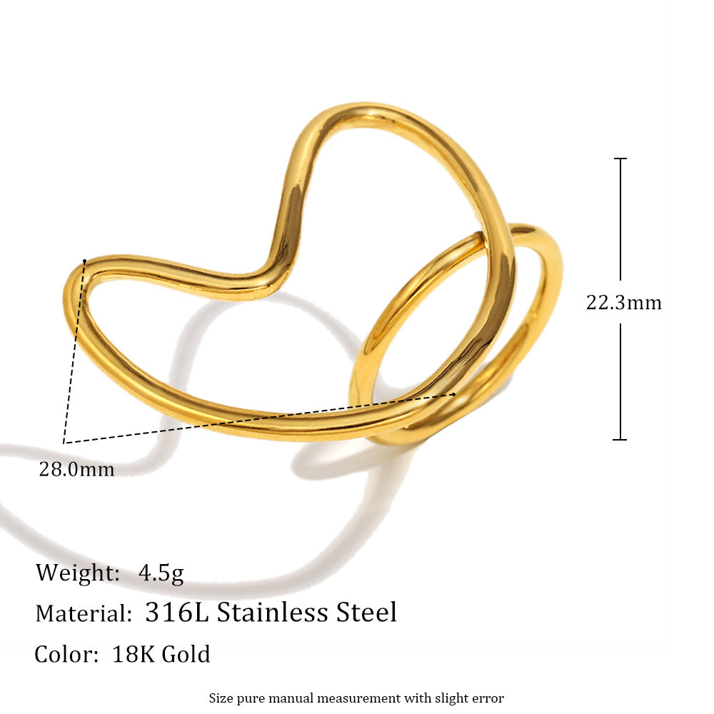 Popular Minimalist Style Versatile Niche Jewelry Stainless Steel Plated 18K Gold Exaggerated Heart Line Ring