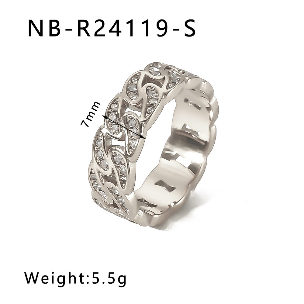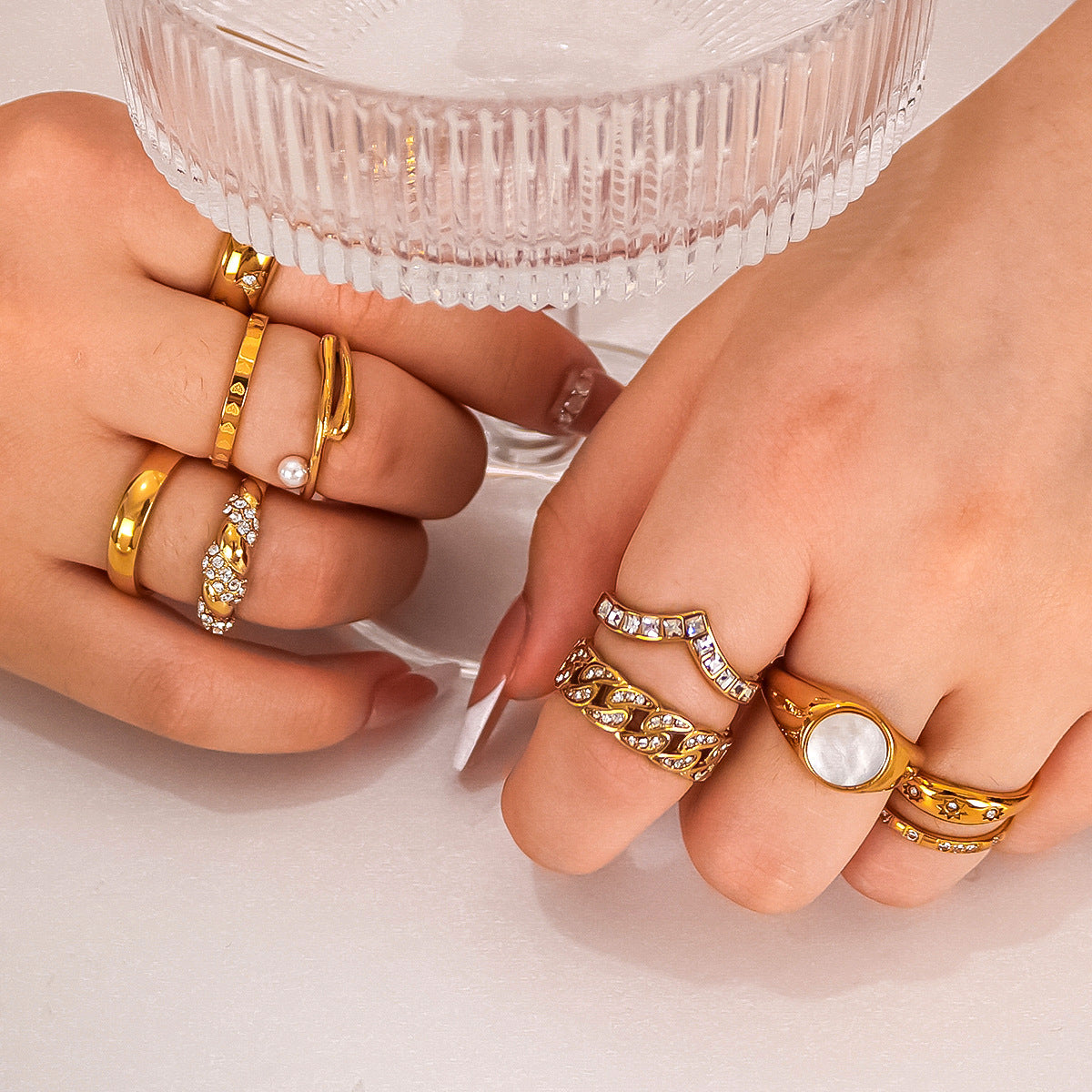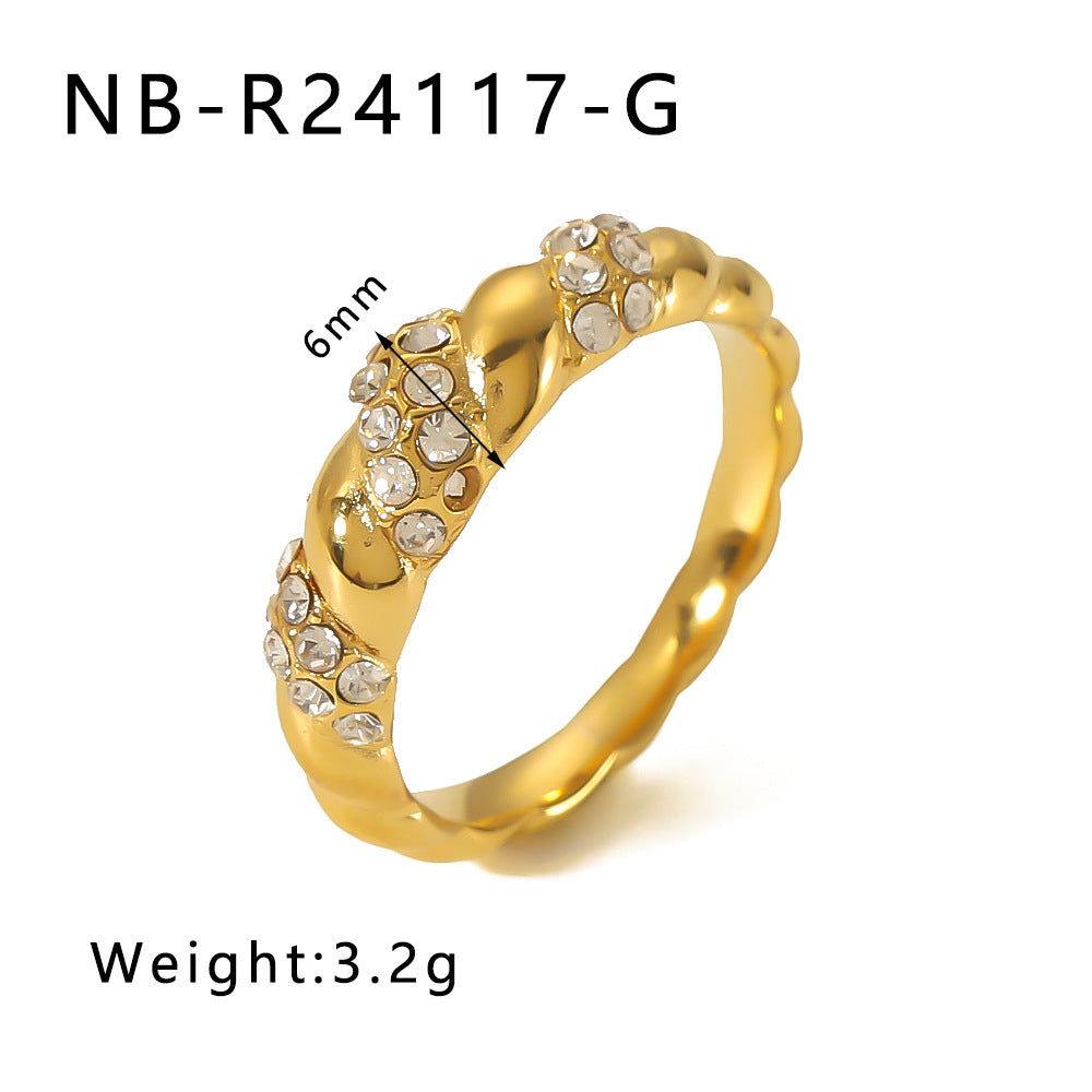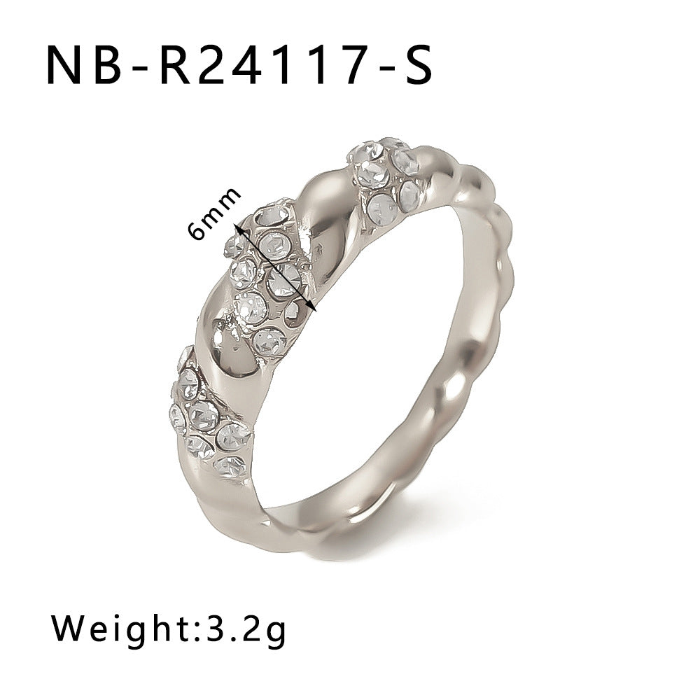 Popular Stainless Steel Diamond-Studded Sparkling Style Elegant Ladies Twist Texture Stacking