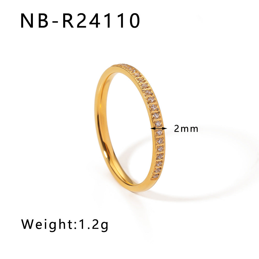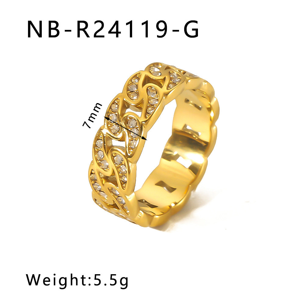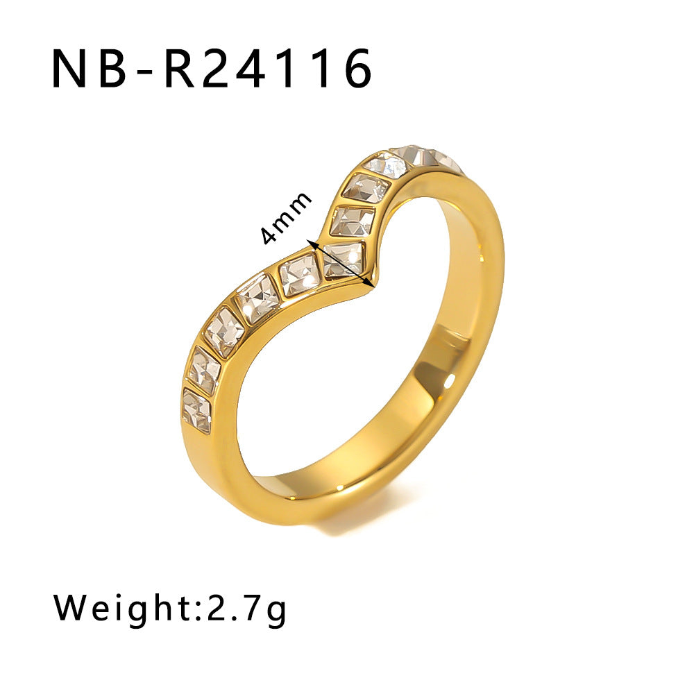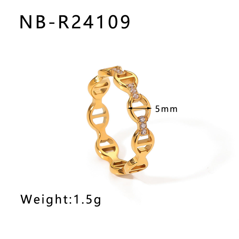Popular Stainless Steel Diamond-Studded Sparkling Style Elegant Ladies Twist Texture Stacking