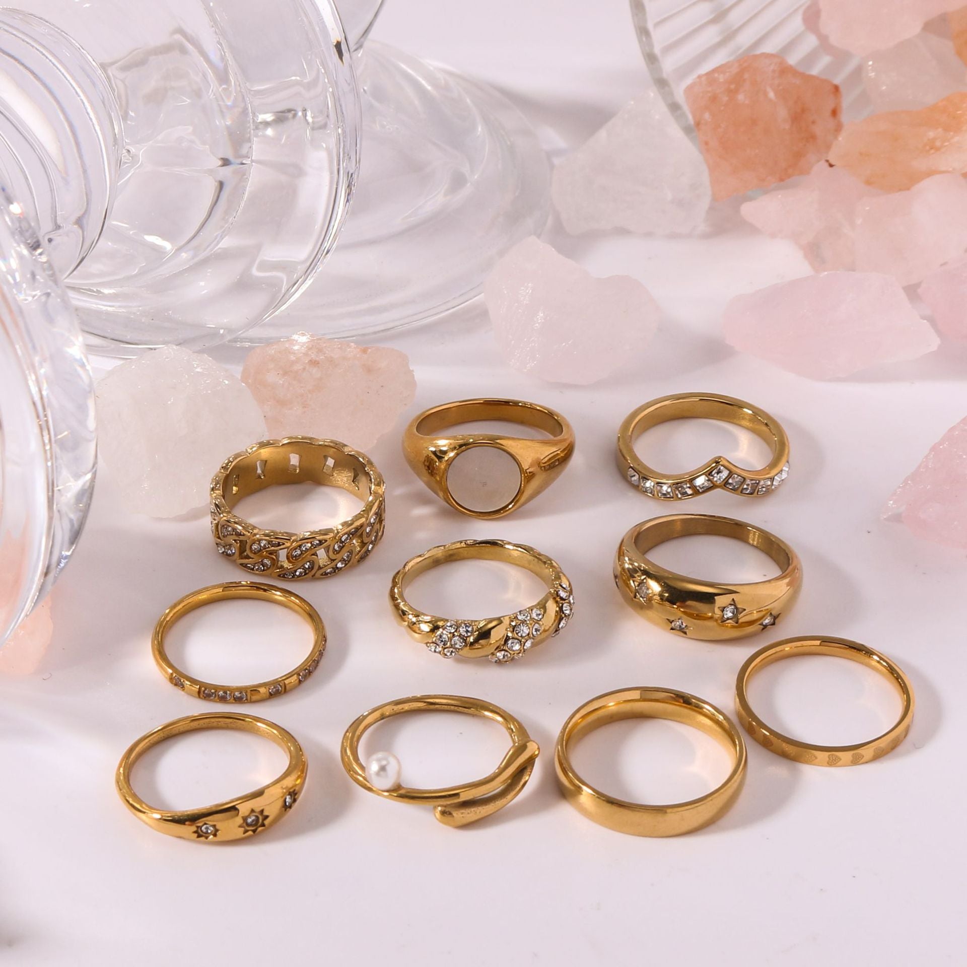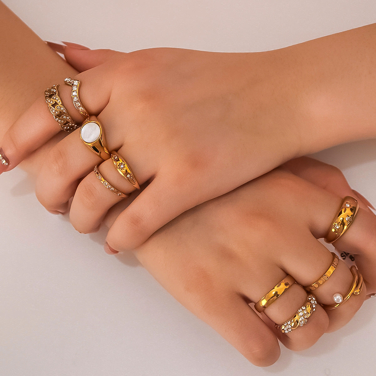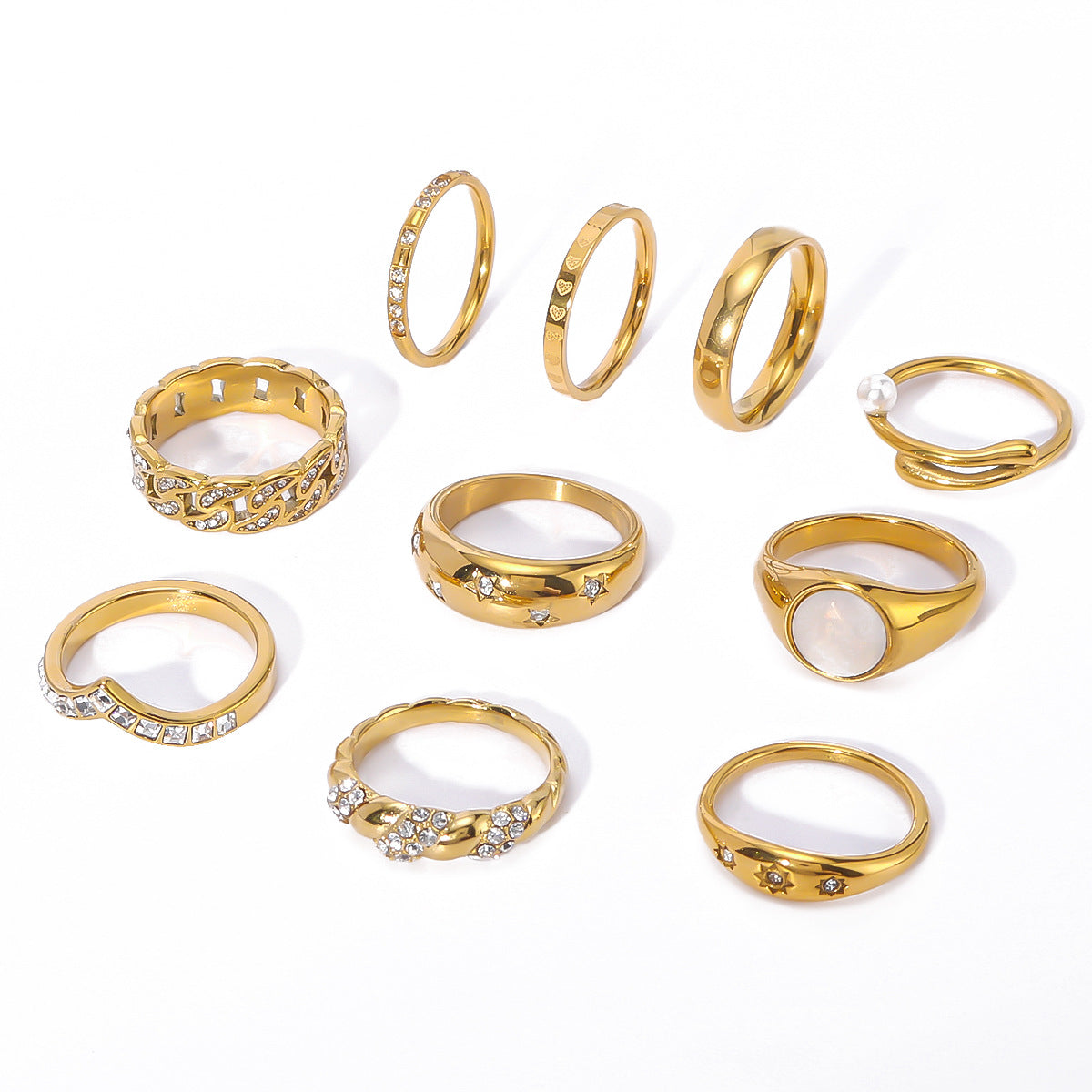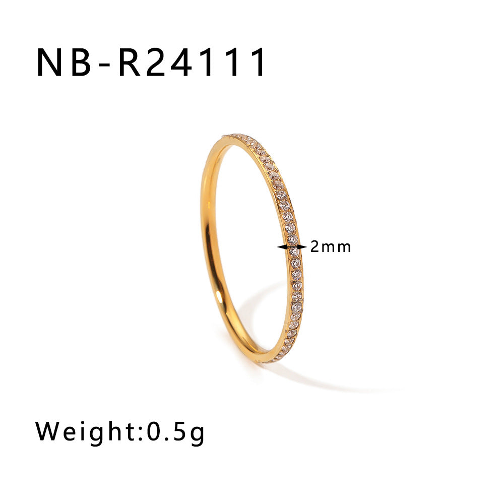 Popular Stainless Steel Diamond-Studded Sparkling Style Elegant Ladies Twist Texture Stacking