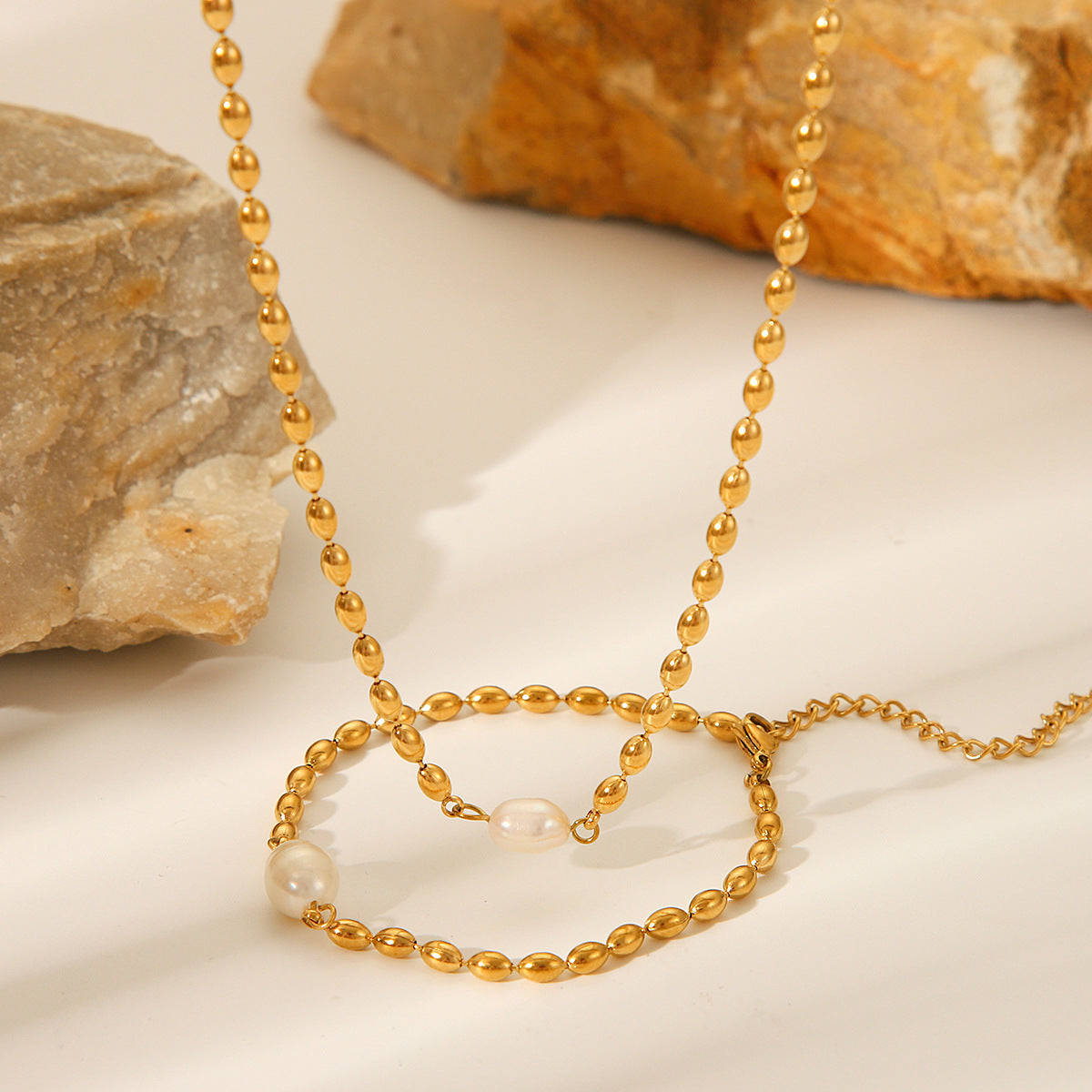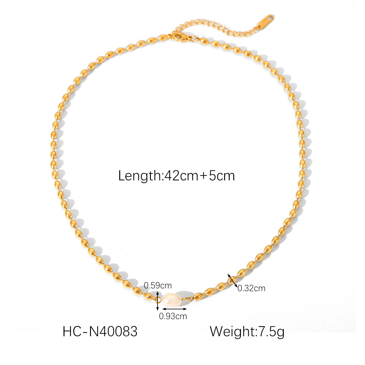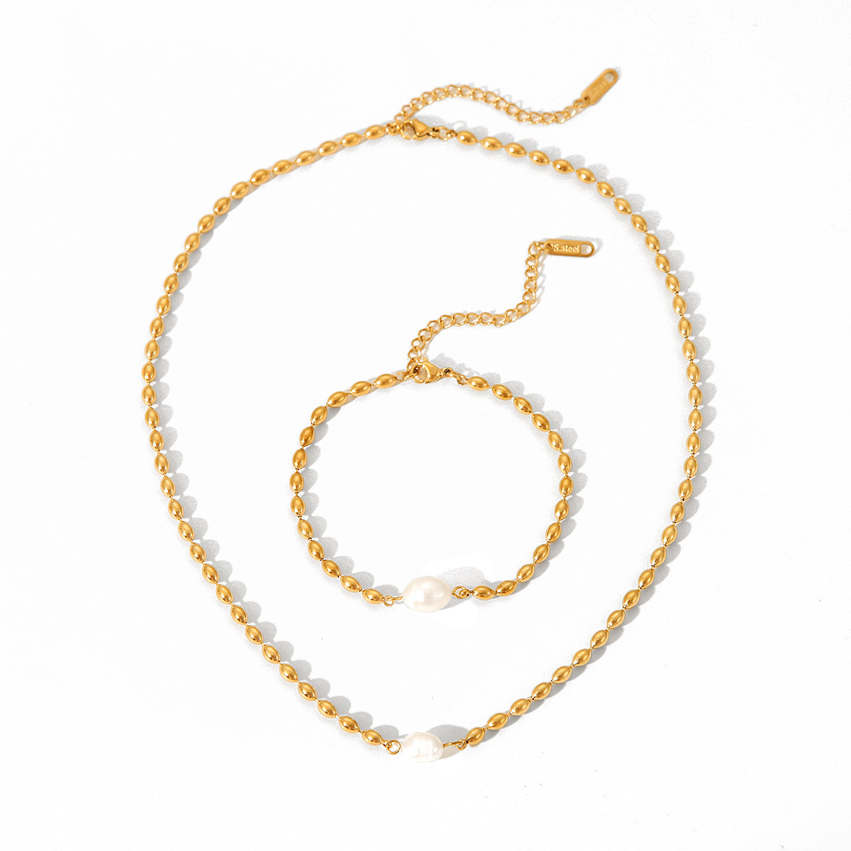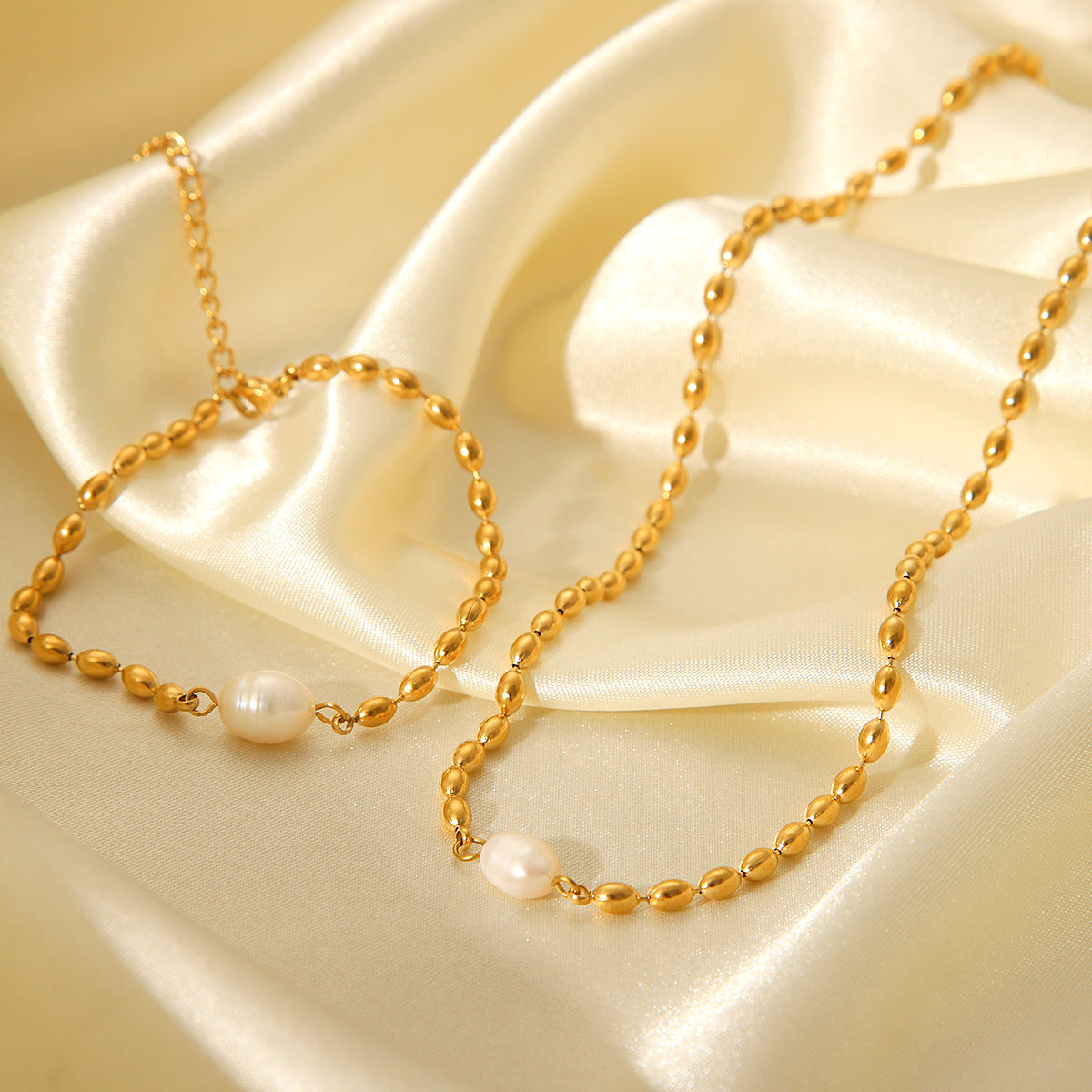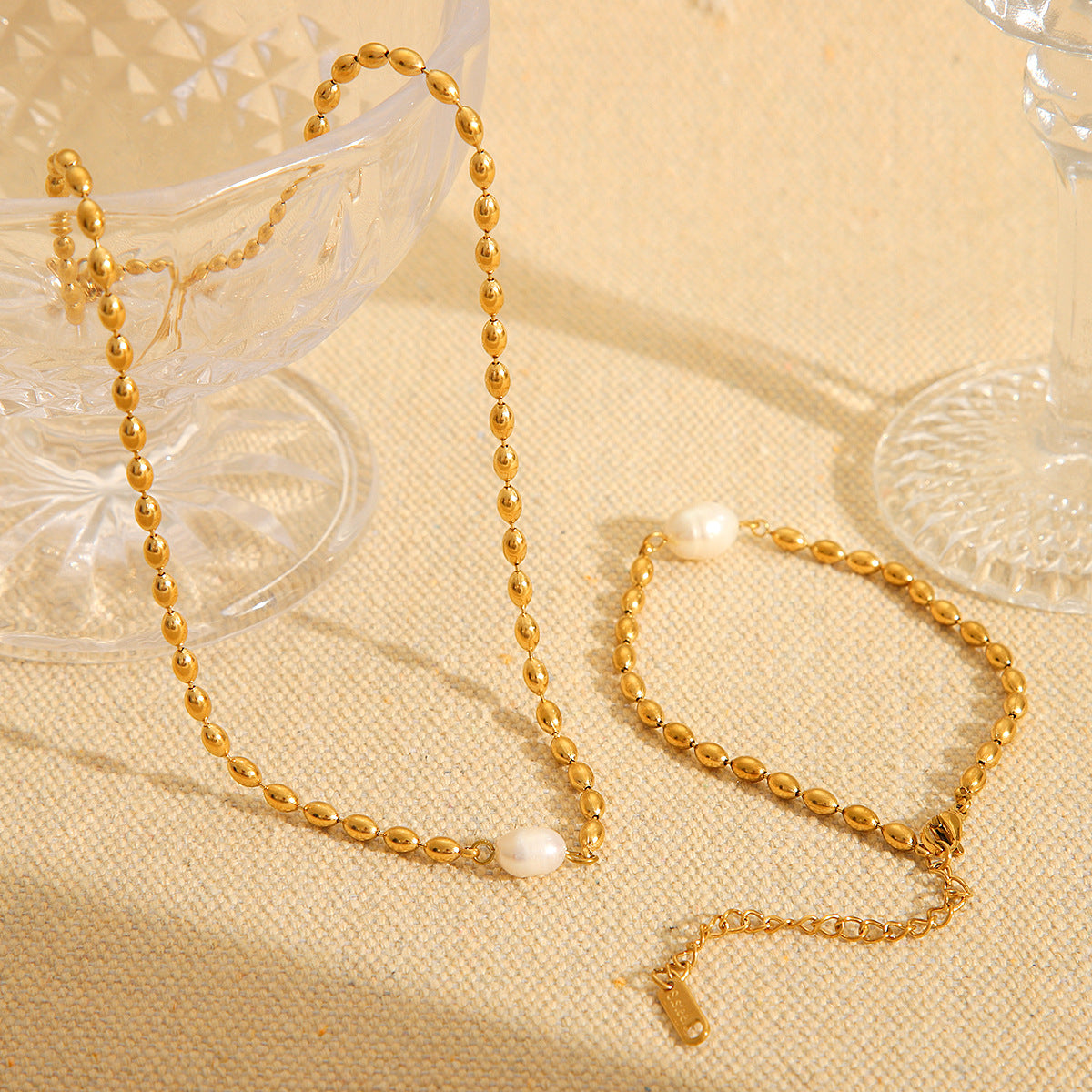 Processing And Customization Of French Natural Freshwater Pearl Oval Gold Bean Necklace Stainless Steel Bracelet Titanium Steel