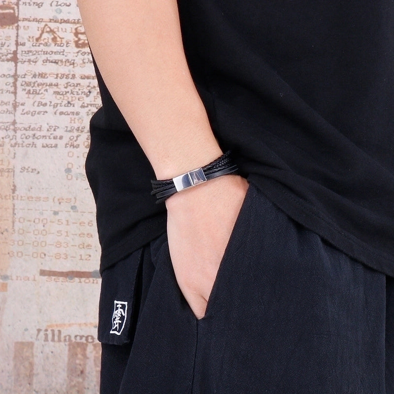 Be the first to review “Punk Classic Style Streetwear Geometric Stainless Steel Pu Leather Men’s Bangle” Cancel reply