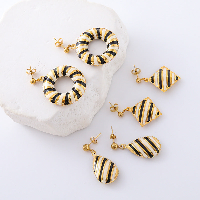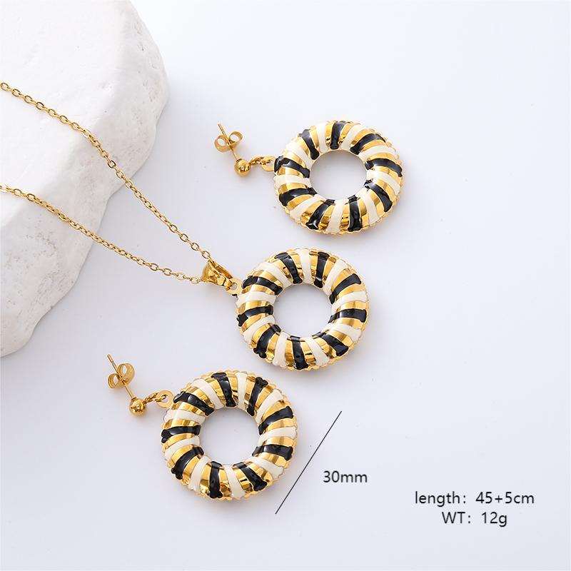 Quadrilateral Stripe Round Stainless Steel Jewelry Sets