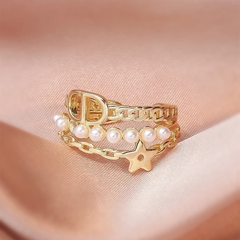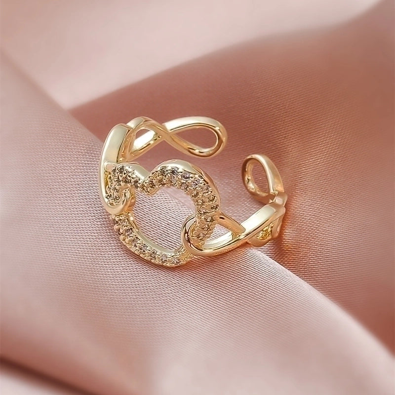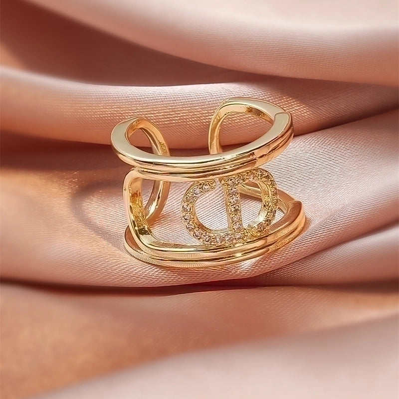Real Gold Plating Multi-layer Cross Diamond Geometric Open Index Finger Copper Ring
