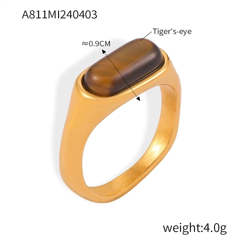 Retro British Style Oval Tiger Eye Titanium Steel 18K Gold Plated Tiger Eye Rings In Bulk