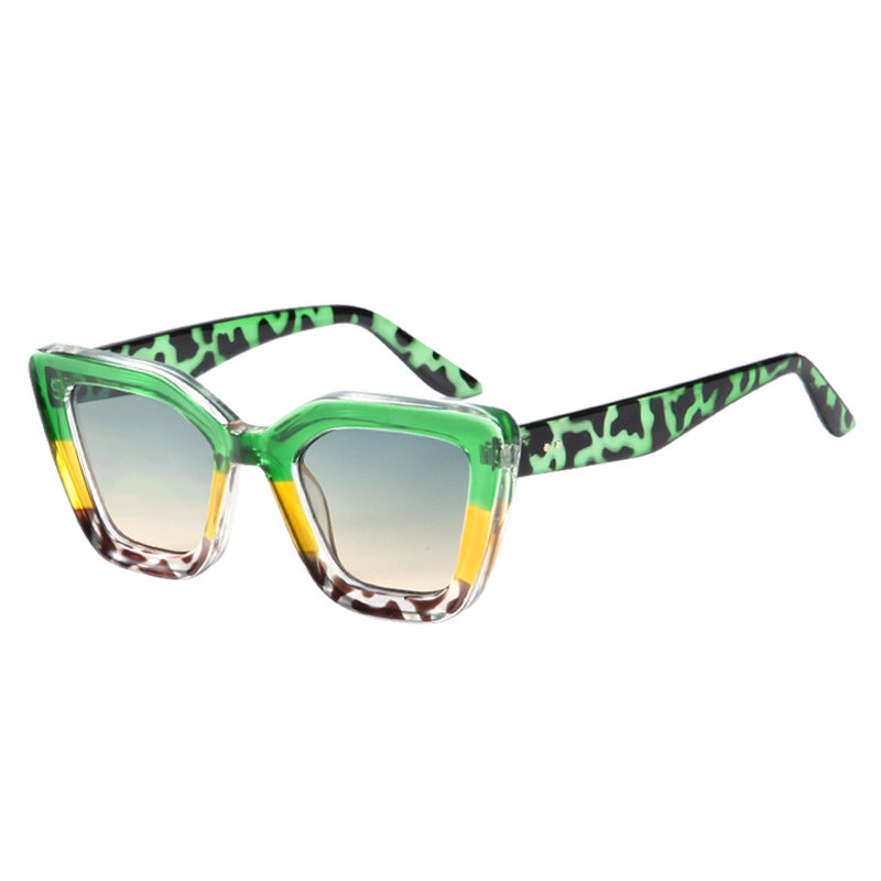 Retro Color Block Solid Color Leopard Pc Cat Eye Full Frame Glasses