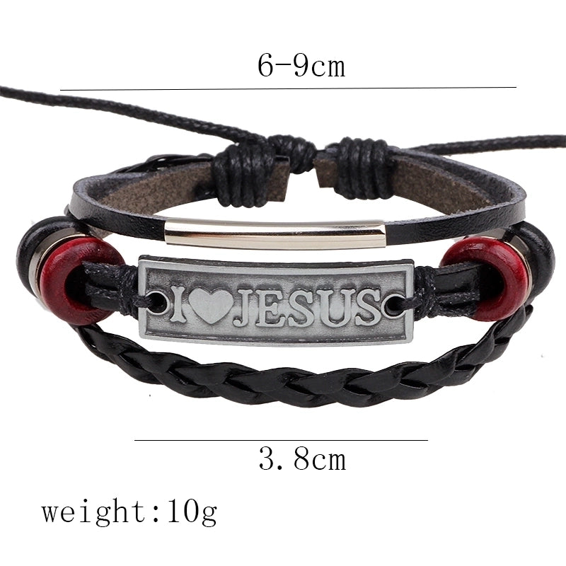 Retro Cross Pu Leather Alloy Braid Unisex Bracelets