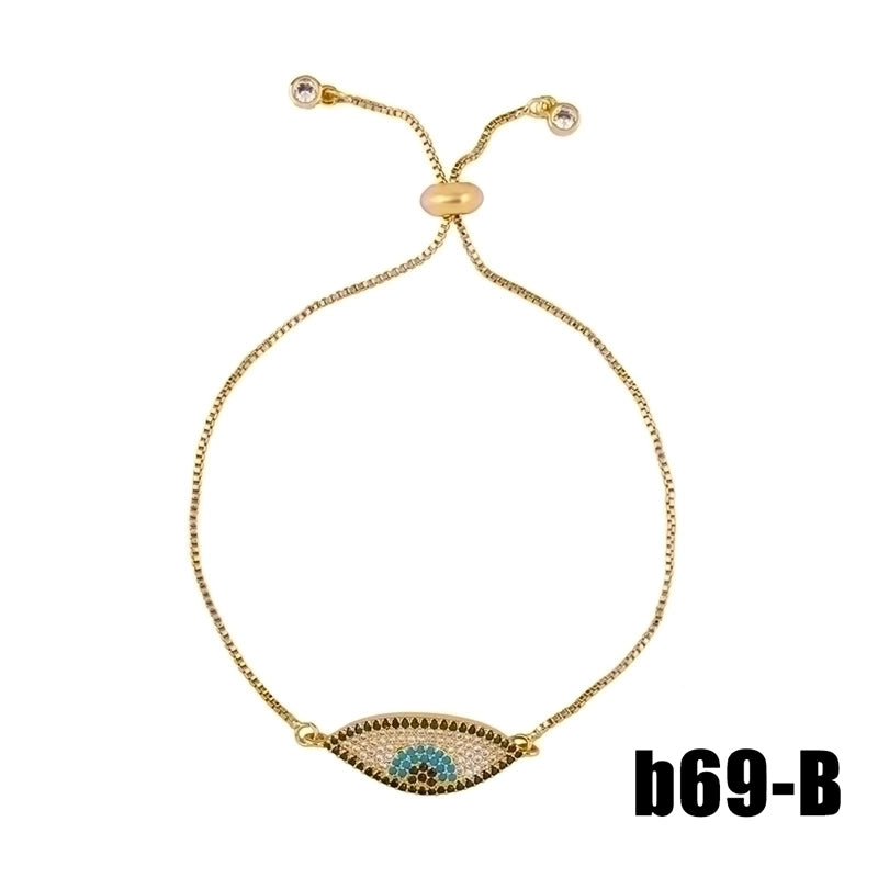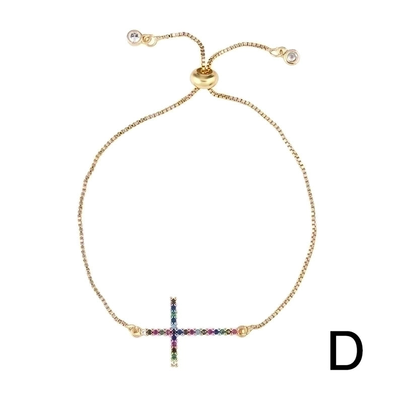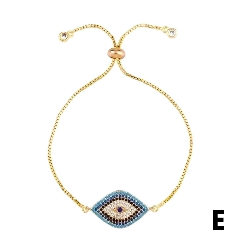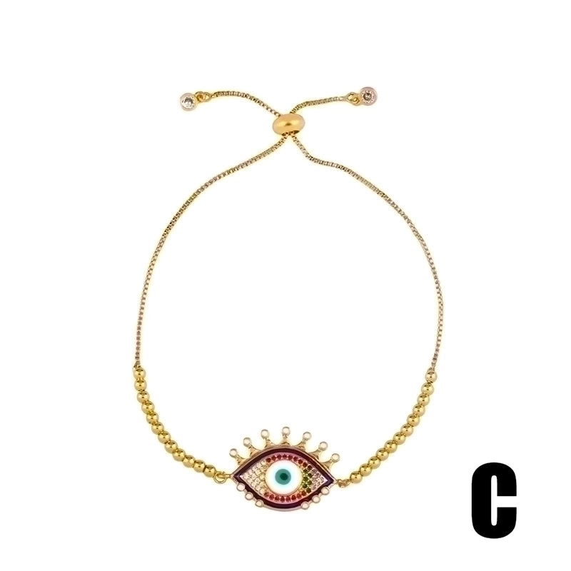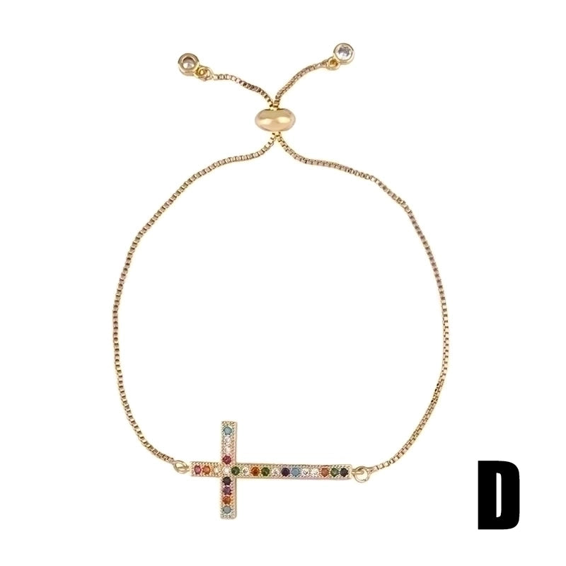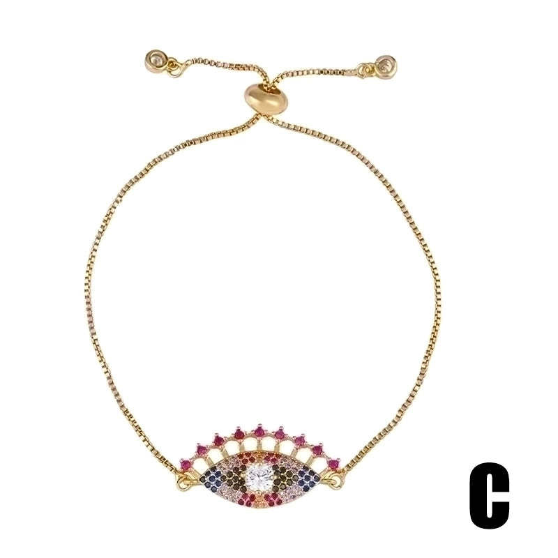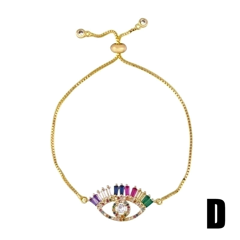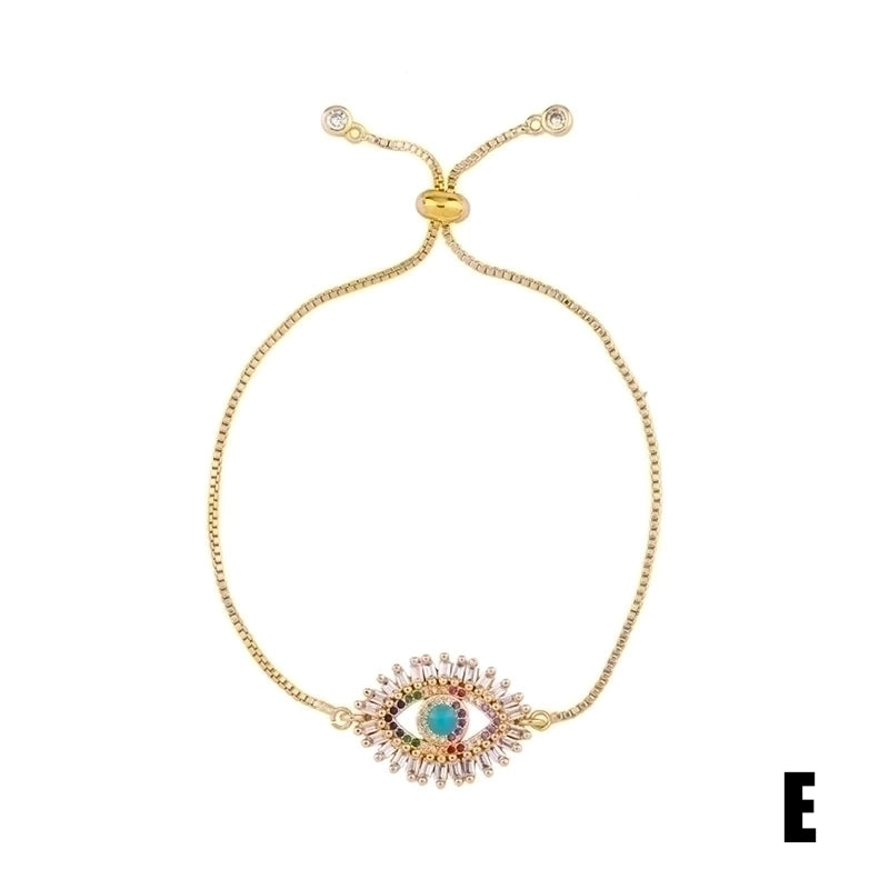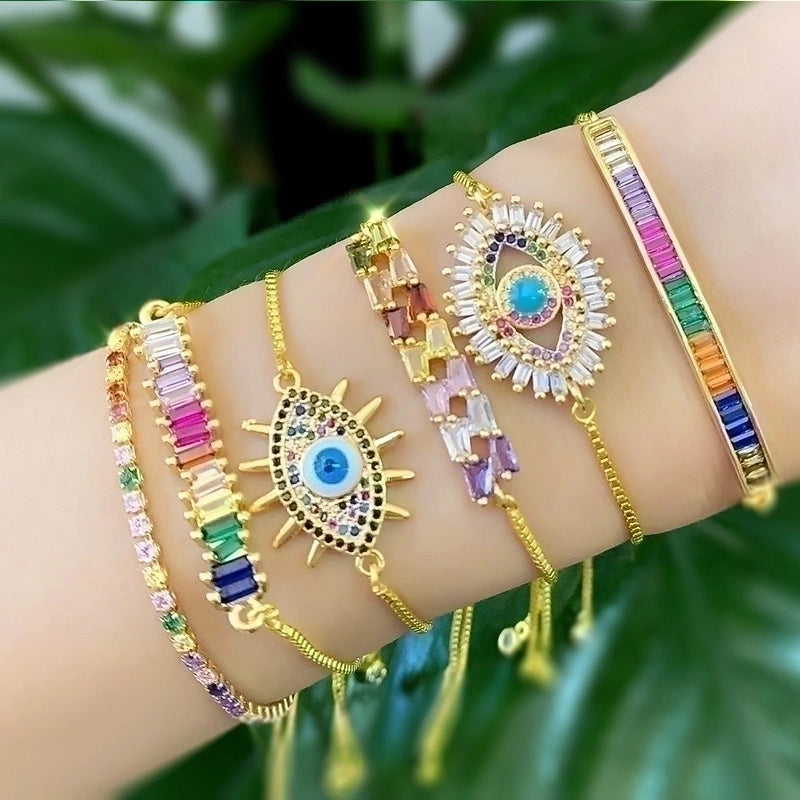 Retro Cross Rainbow Devil’s Eye Copper Gold Plated Zircon Bracelets 1 Piece