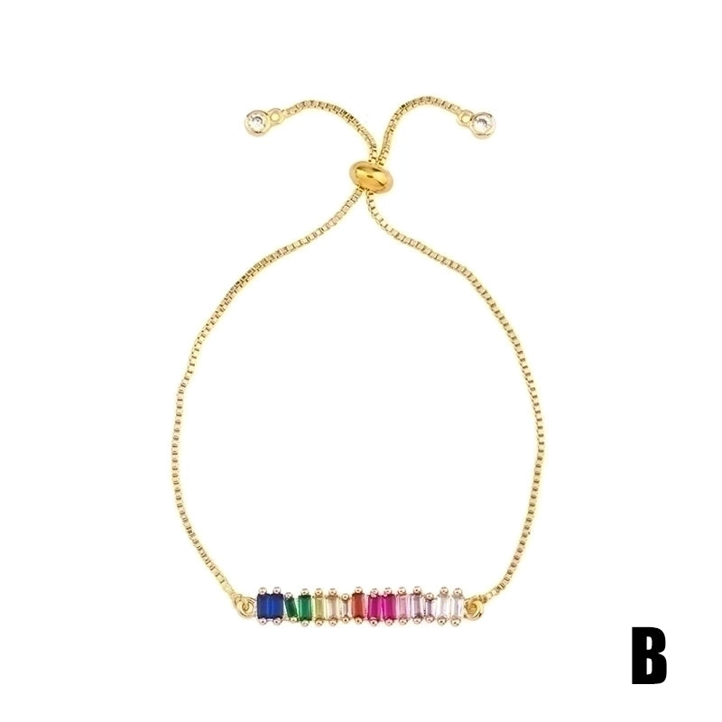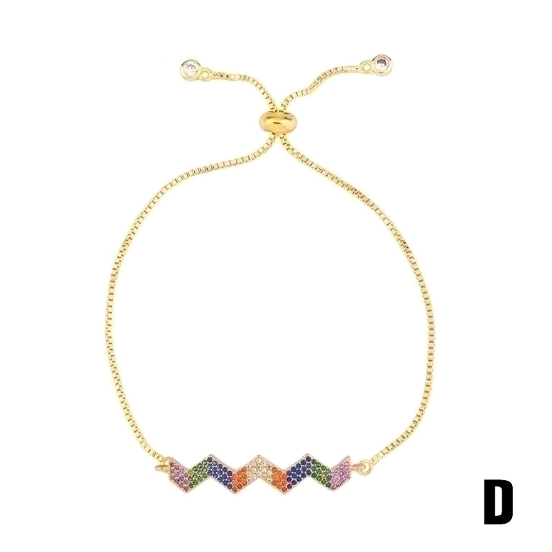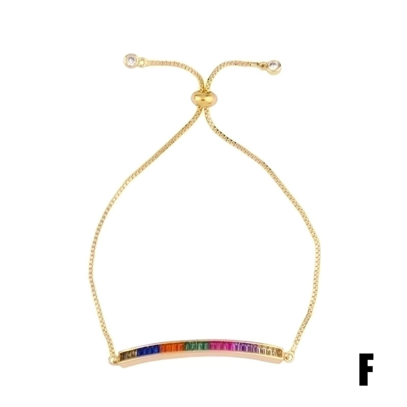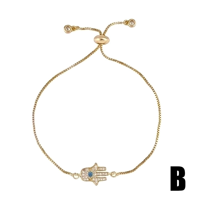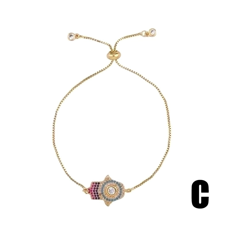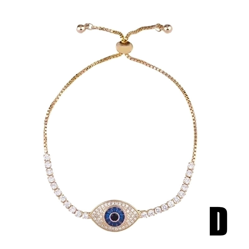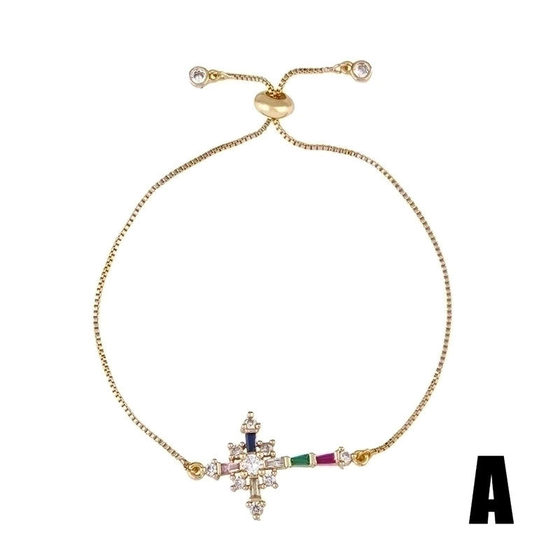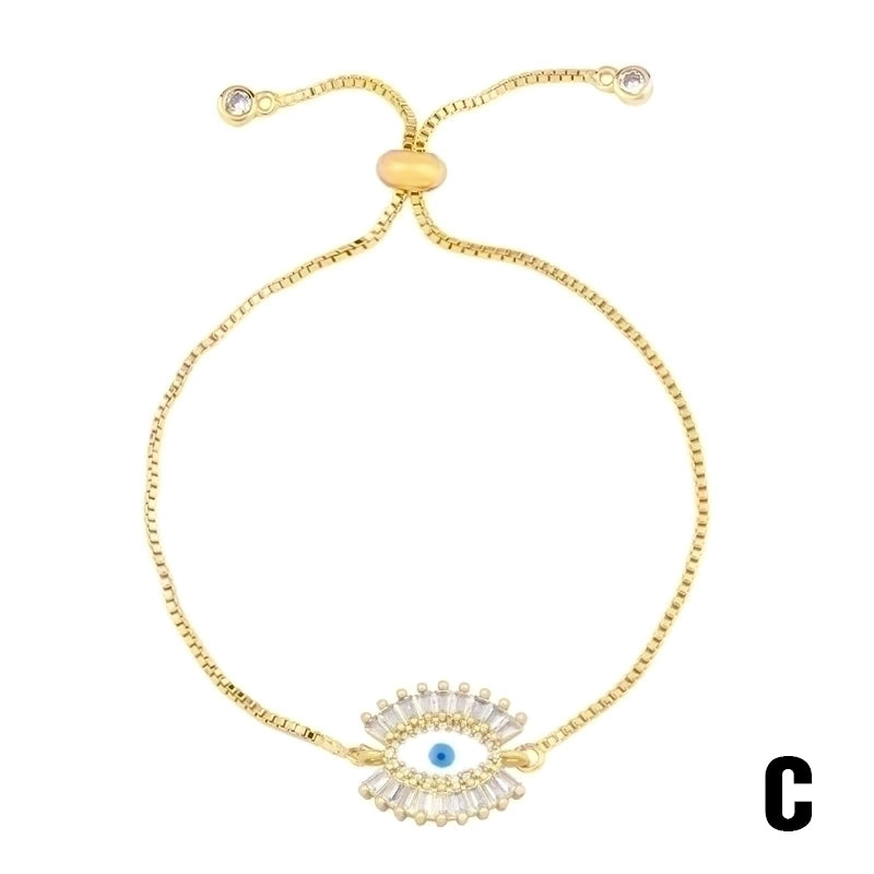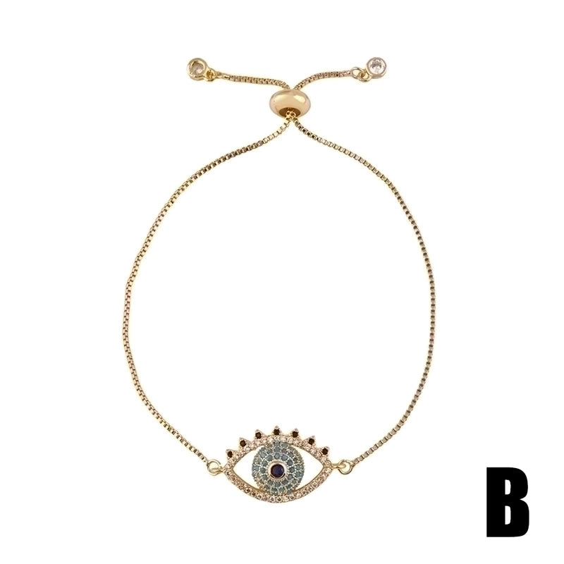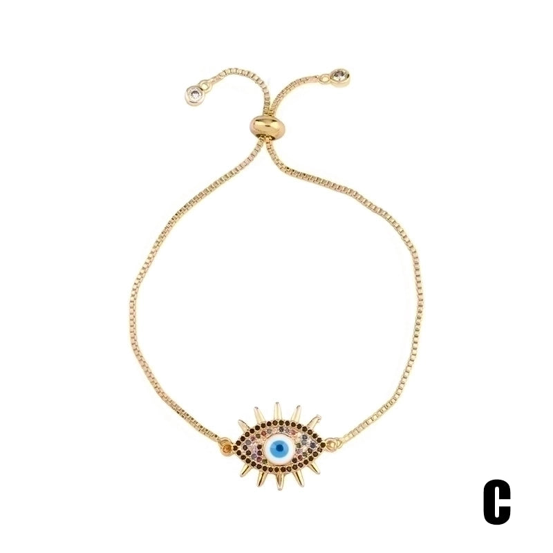 Retro Cross Rainbow Devil’s Eye Copper Gold Plated Zircon Bracelets 1 Piece