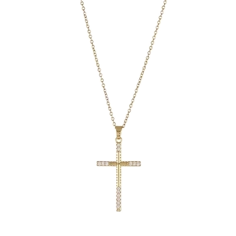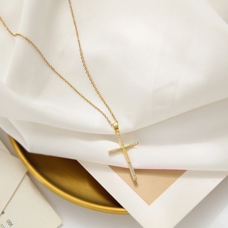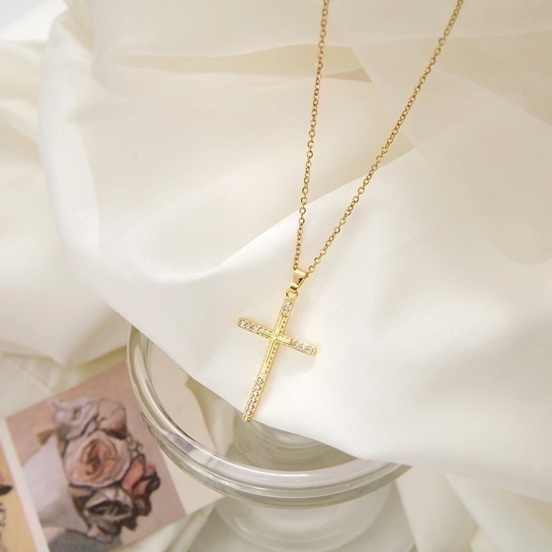 Retro Cross Stainless Steel Inlaid Zircon Necklace