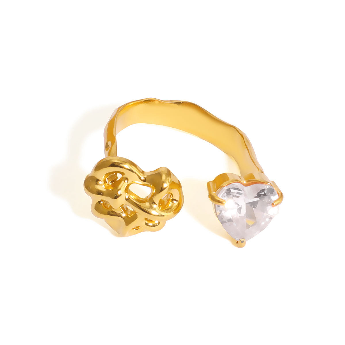 304 Stainless Steel 18K Gold Plated Elegant Retro Plating Geometric Leaf Heart Shape Open Rings