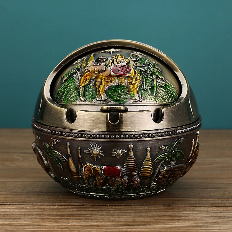 Retro Ethnic Style Elephant Peacock Rose Metal Ashtray Artificial Decorations