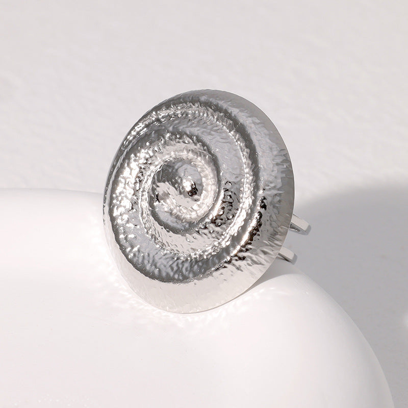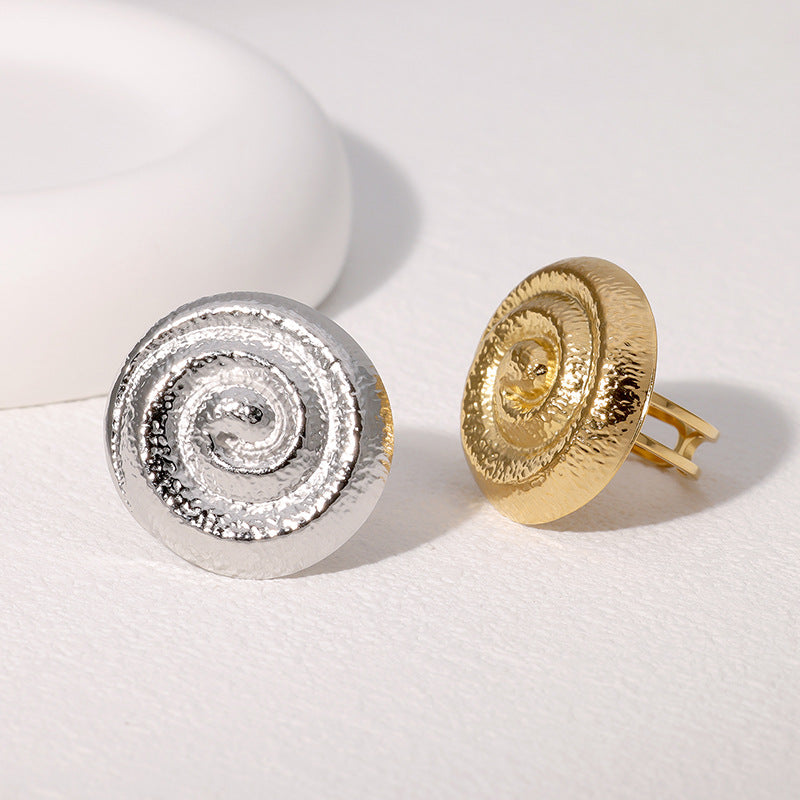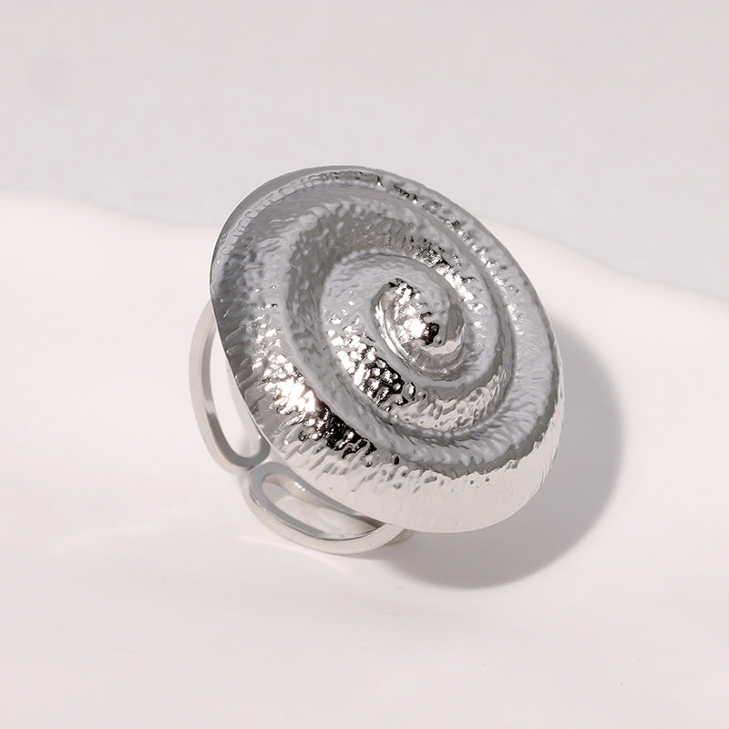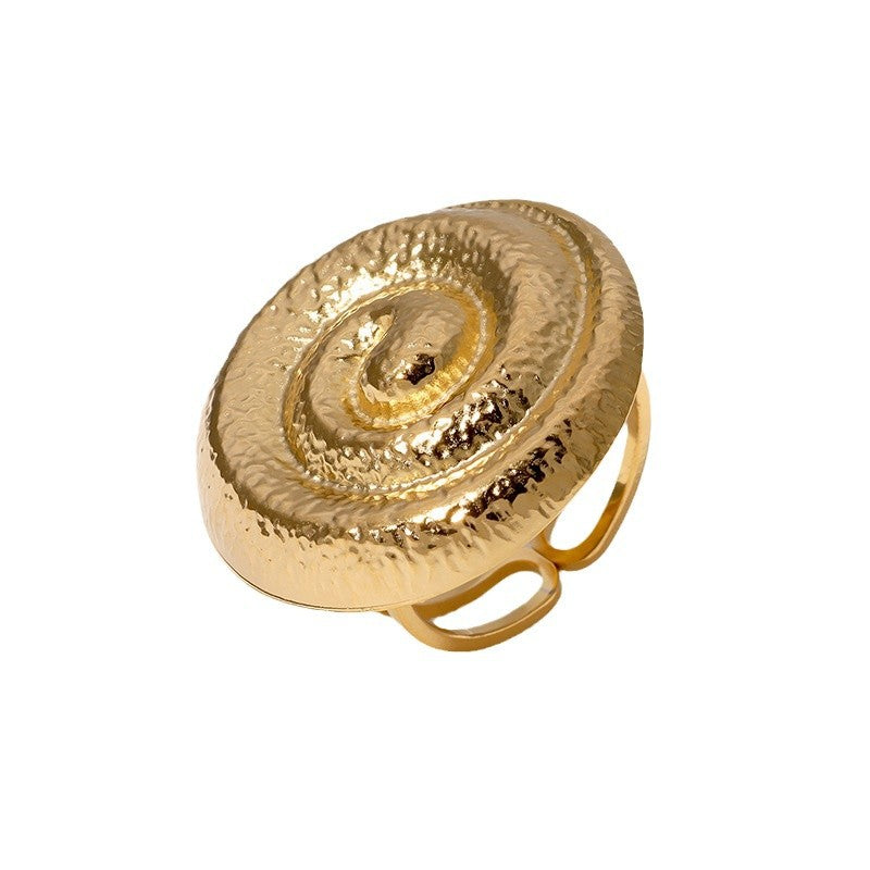 Retro Fashion Spiral Ring Open Geometric Round French Antique Stainless Steel Gold-Plated Ring