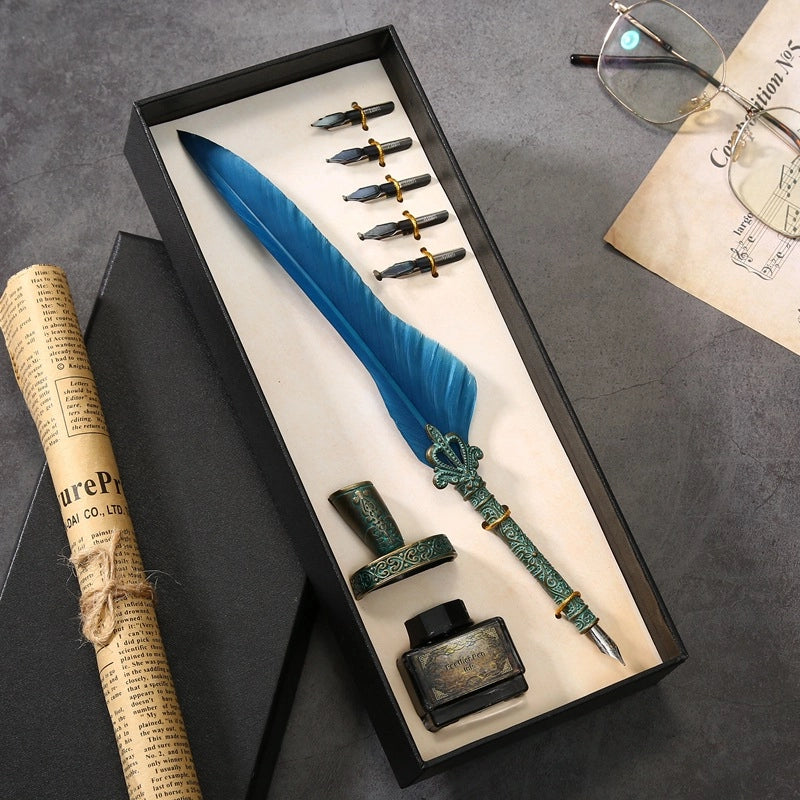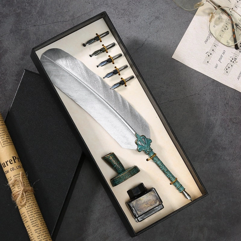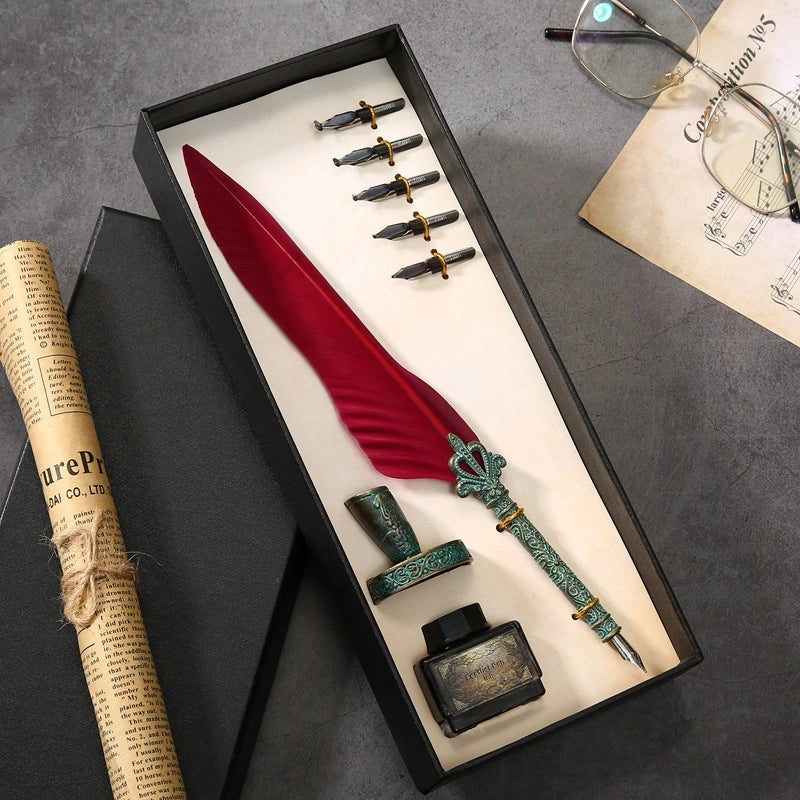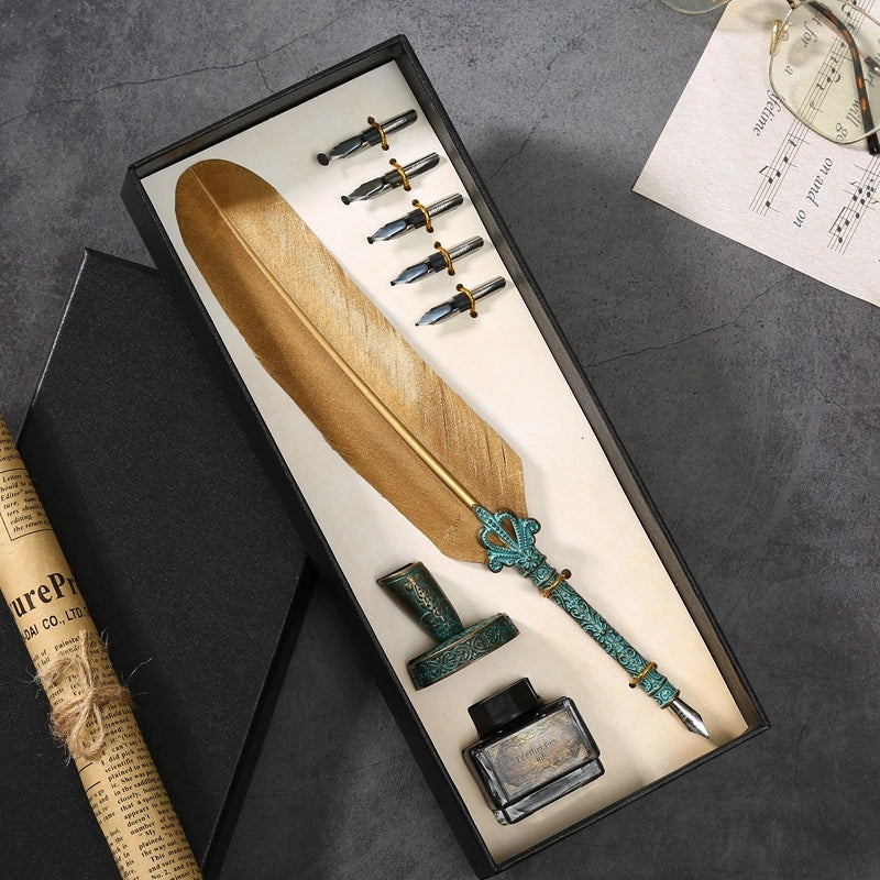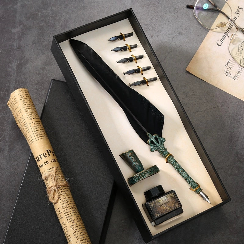 Retro Feather Gothic Body Dip Ink Pen Kit Gift Box Set