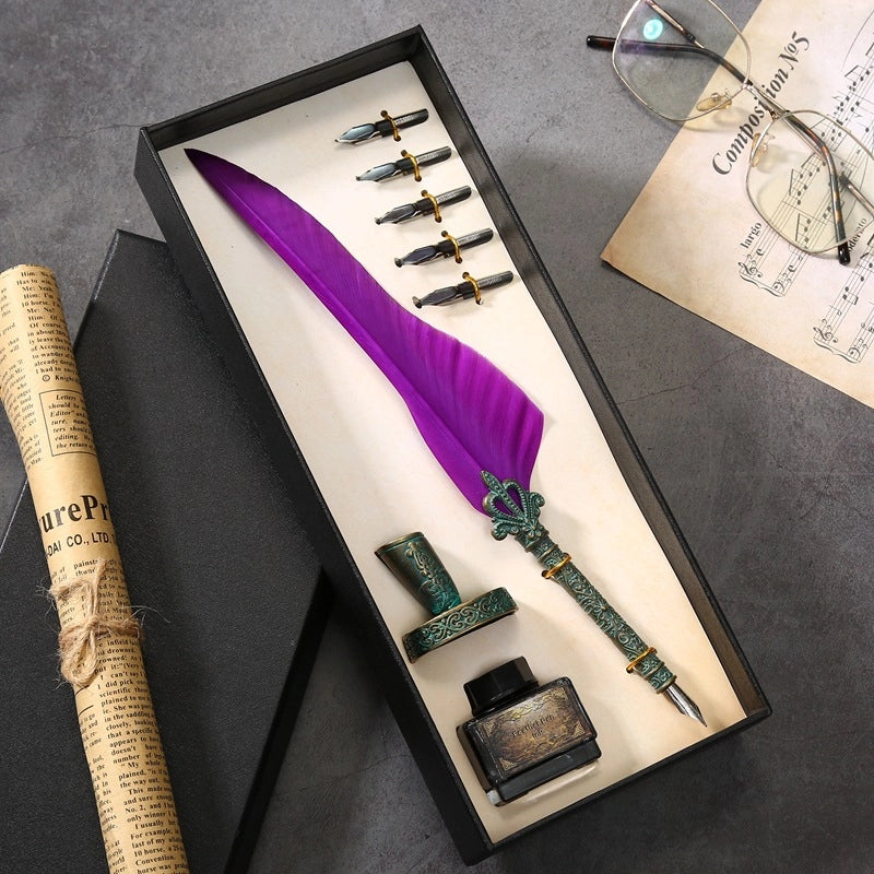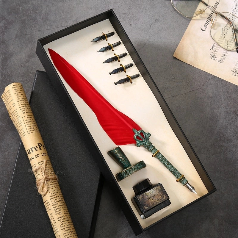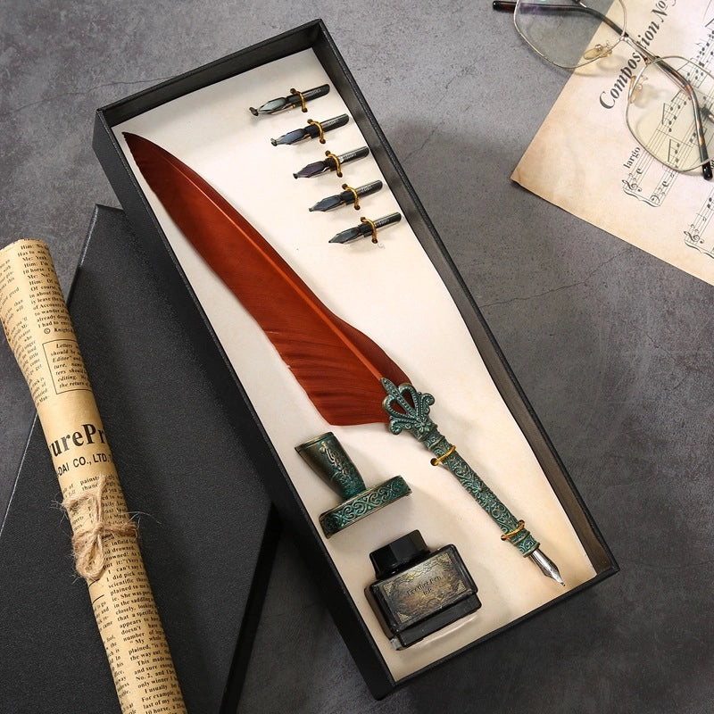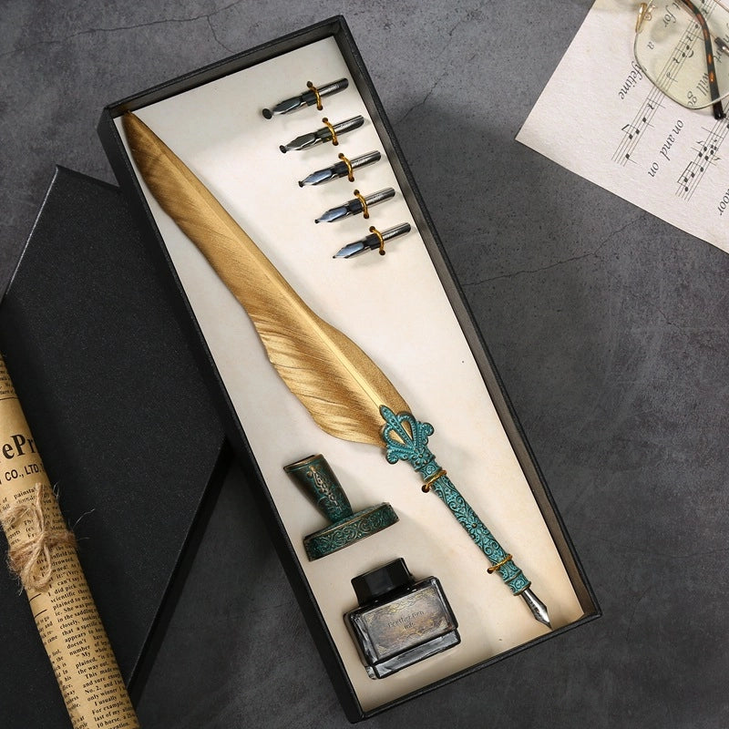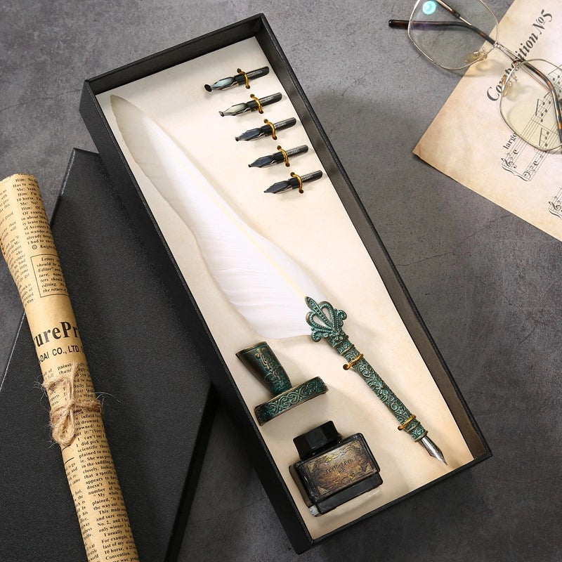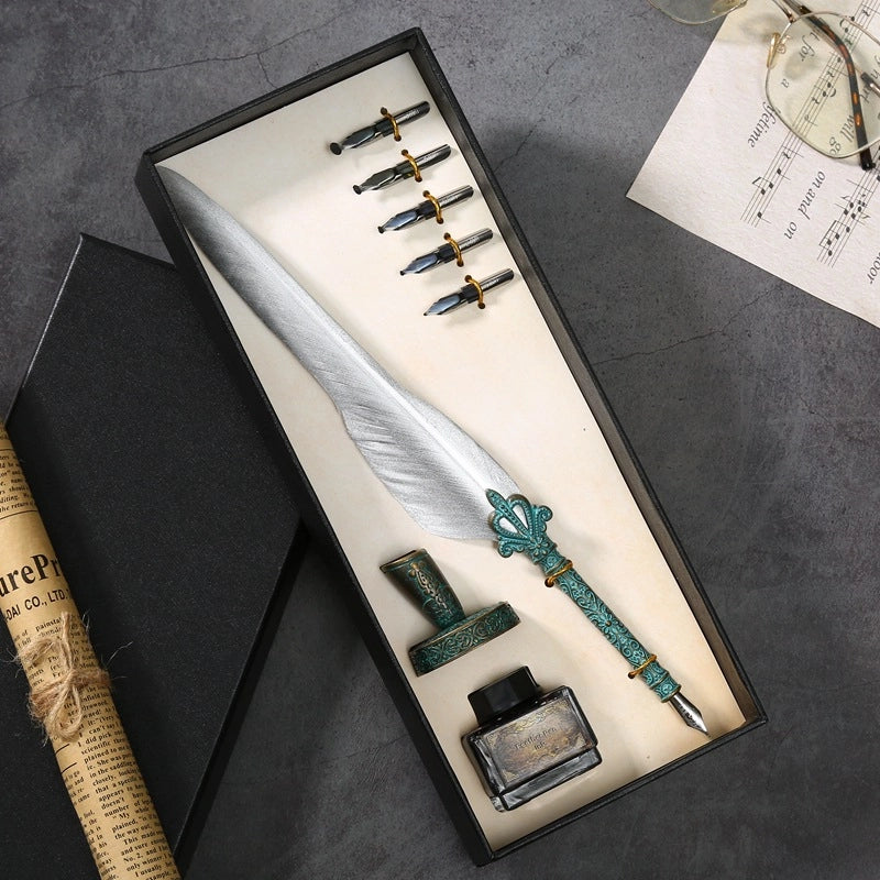 Retro Feather Gothic Body Dip Ink Pen Kit Gift Box Set