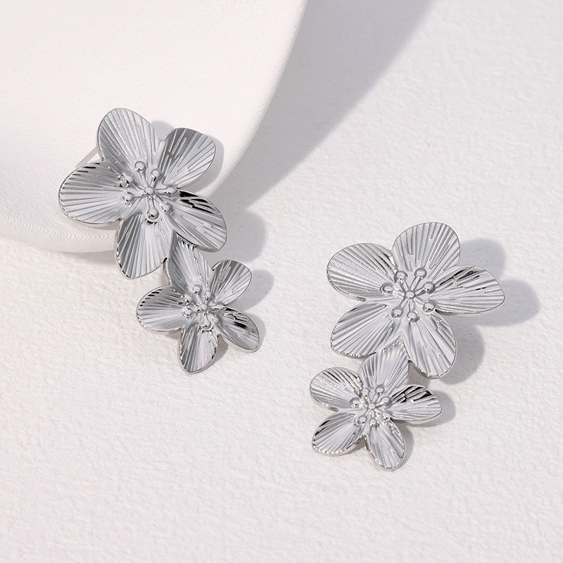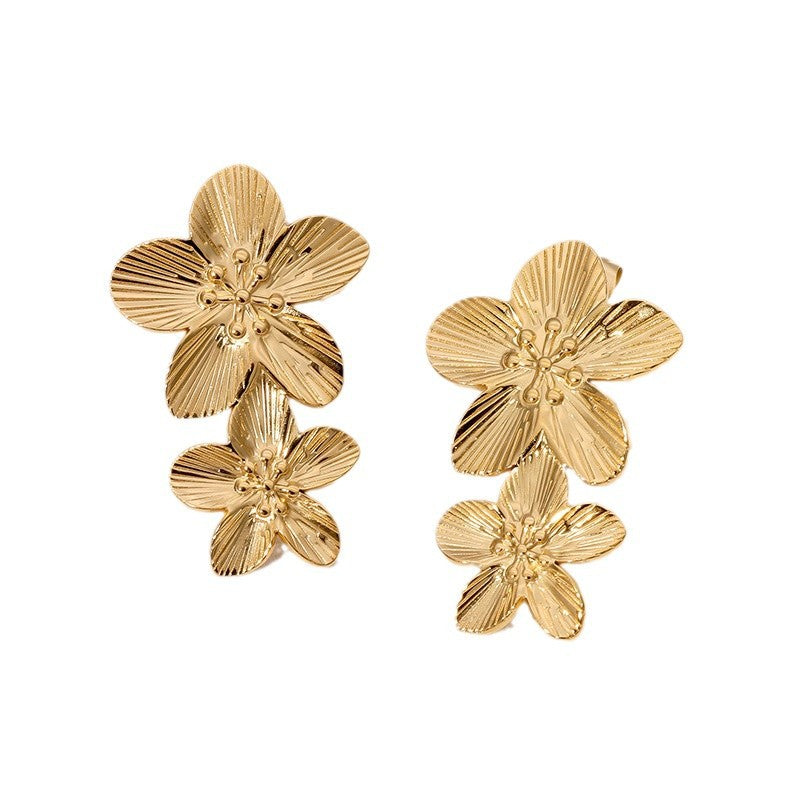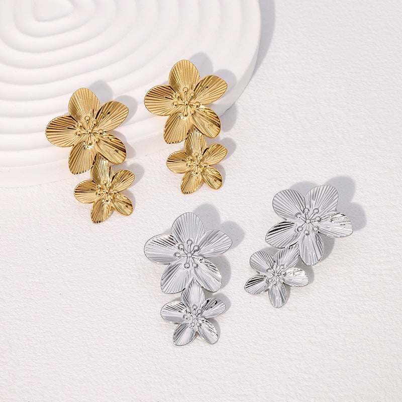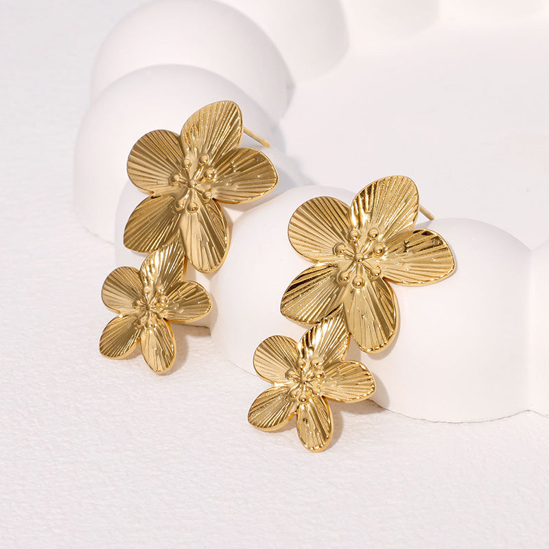 Retro Flower Earrings Niche Simple French Gold-Plated Stainless Steel Earrings