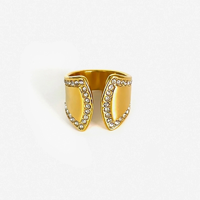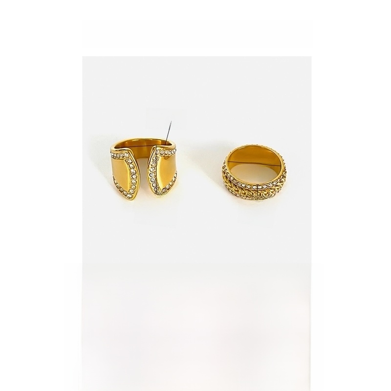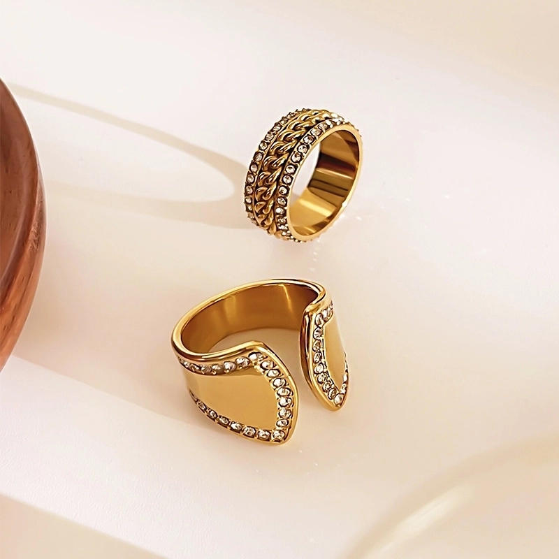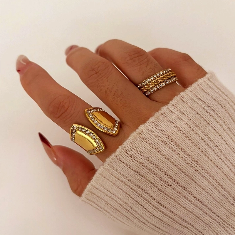 Retro French Style Commute Geometric 316L Stainless Steel Rhinestones 18K Gold Plated Rings