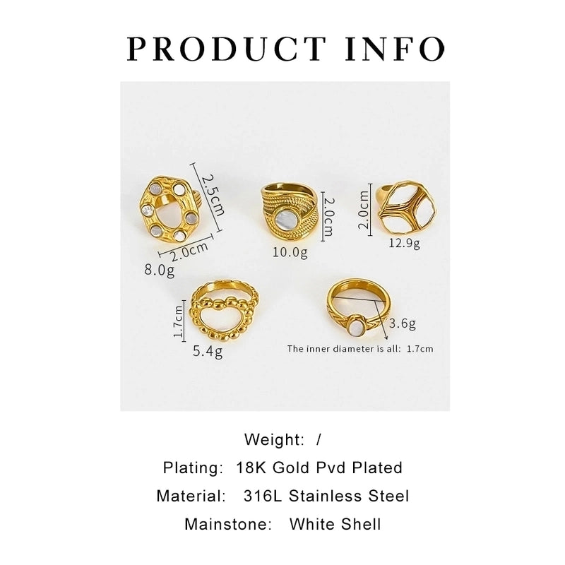 Be the first to review “Retro French Style Geometric Heart Shape 316L Stainless Steel Shell 18K Gold Plated Irregular Rings” Cancel reply