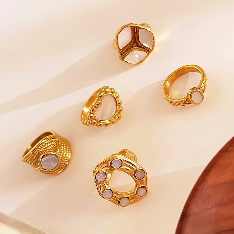 Retro French Style Geometric Heart Shape 316L Stainless Steel Shell 18K Gold Plated Irregular Rings
