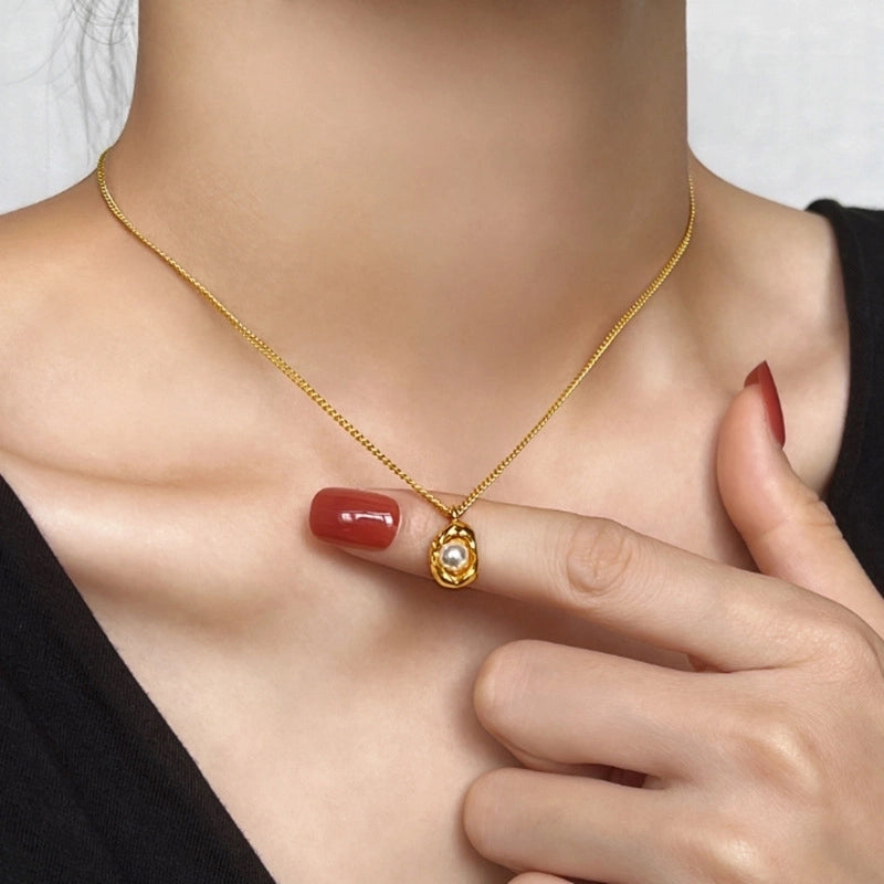 Retro Geometric 304 Stainless Steel Plastic 18K Gold Plated Inlay Stainless Steel Necklaces