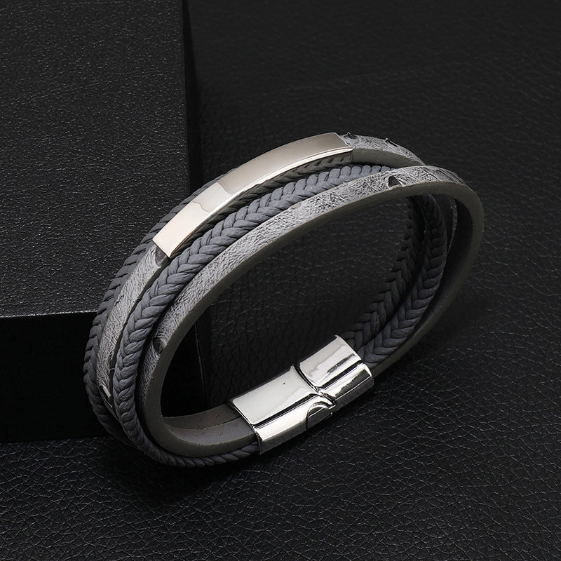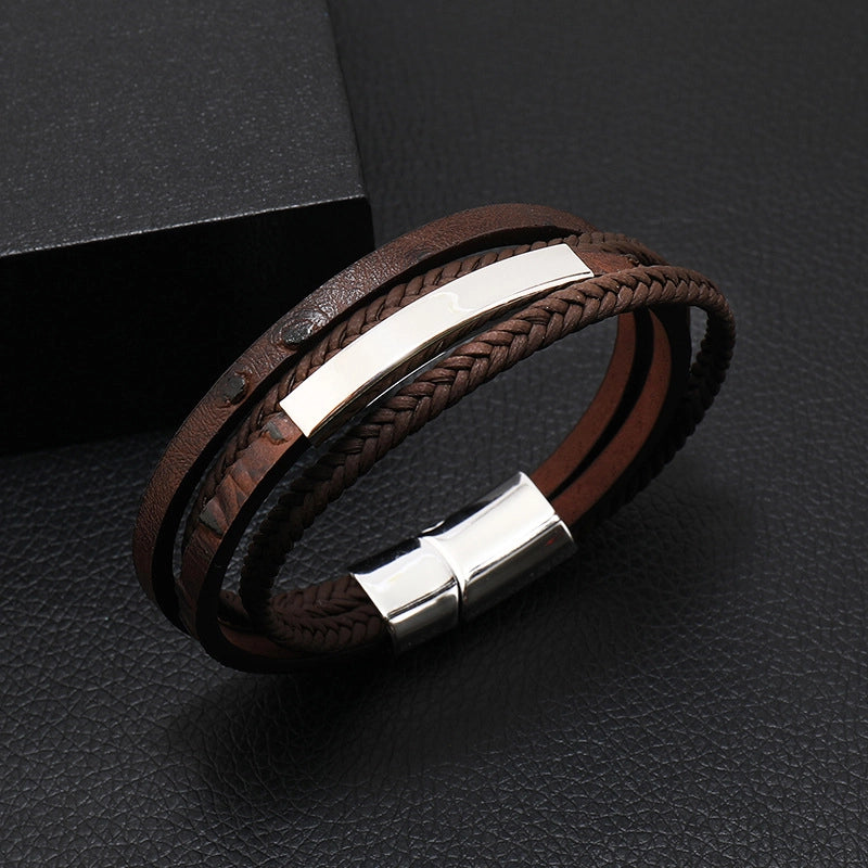 Retro Geometric Pu Leather Alloy Men’s Bracelets Men Cord & Leather Bracelets
