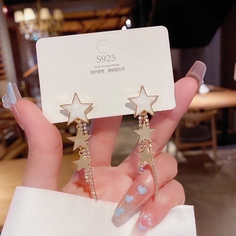 Retro Geometric Star Bow Knot Copper Inlay Zircon Drop Earrings 1 Pair