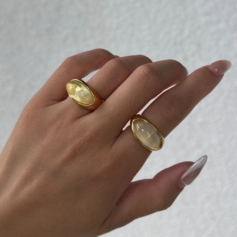 Retro Geometric Titanium Steel Inlay Opal Rings