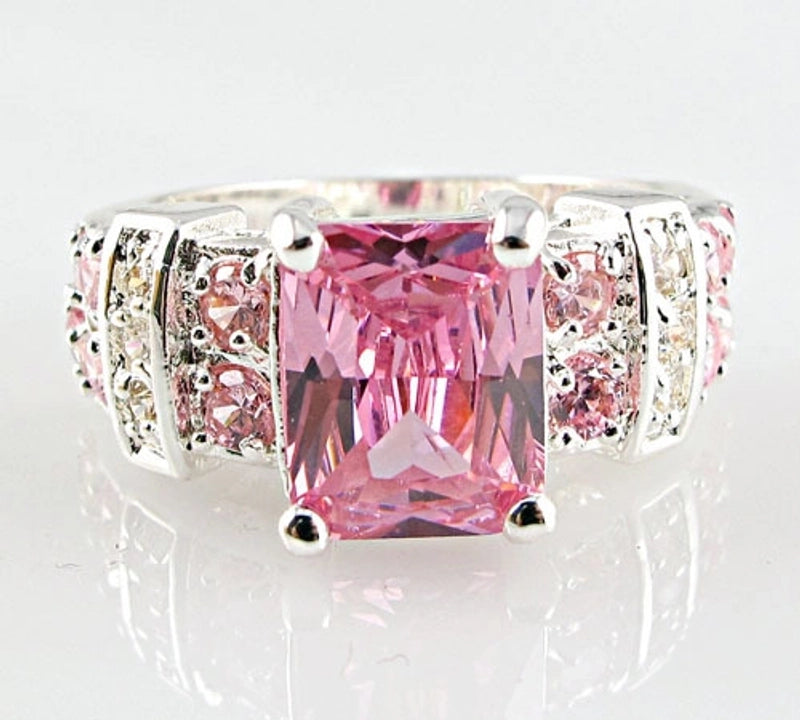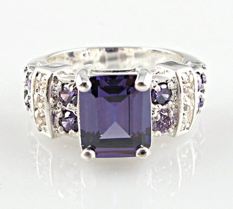 Retro Ladies Ring Copper Silver Plated Zircon Ring Engagement Wedding Jewelry