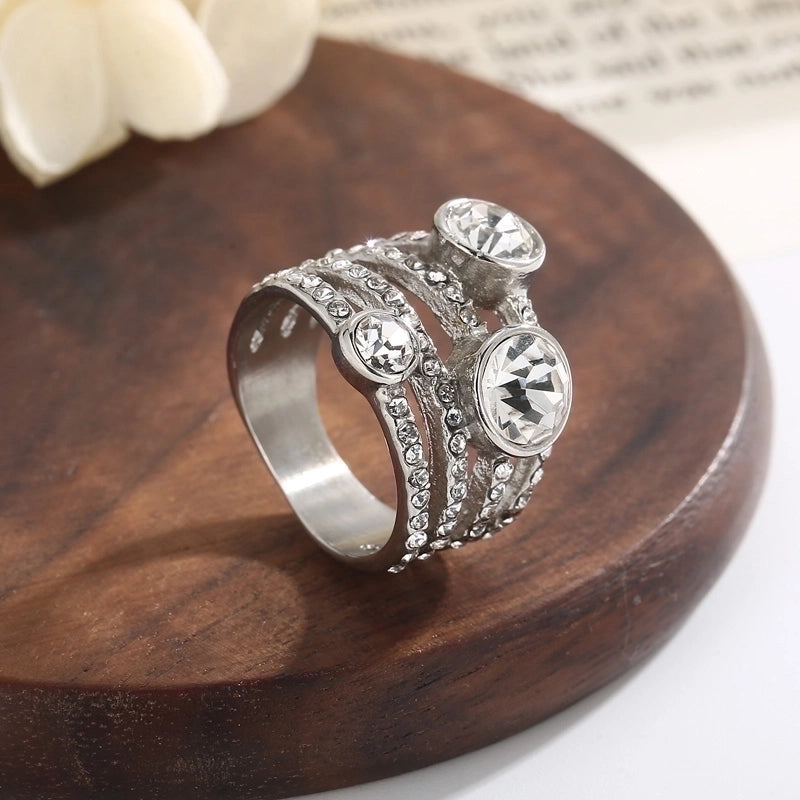 Retro Luxurious Lady Geometric Snake Stainless Steel Zircon 18K Gold Plated Inlay Rings