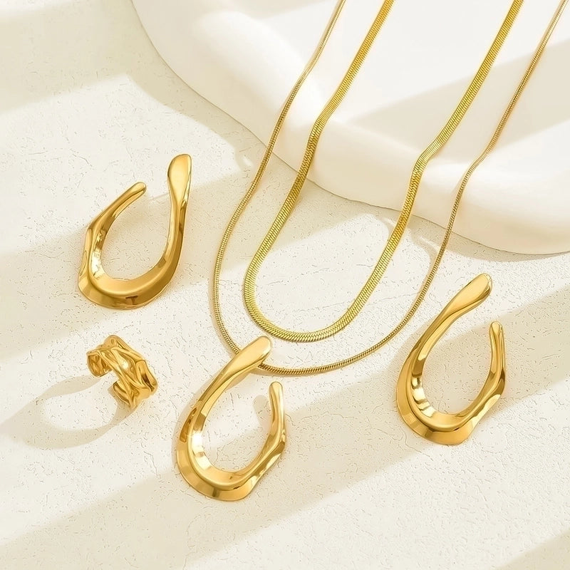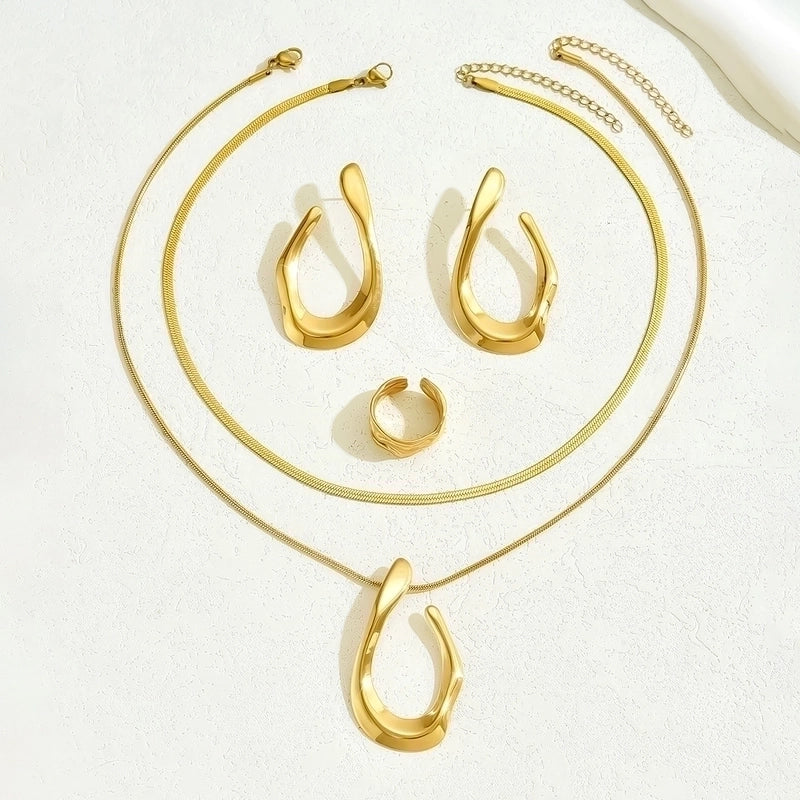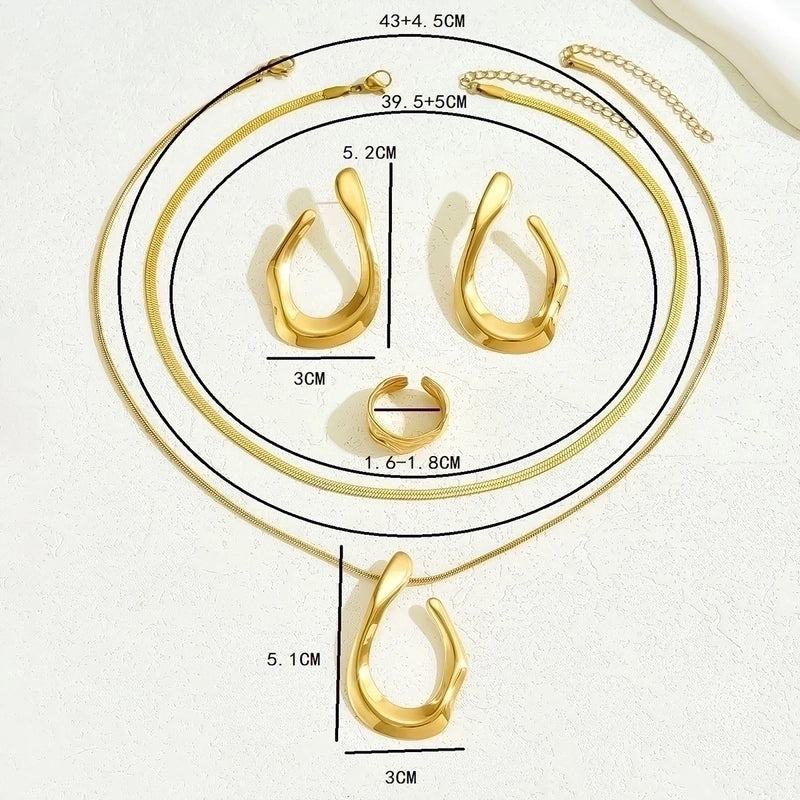 Retro Minimalist Geometric 201 Stainless Steel Imitation Gold Jewelry Set