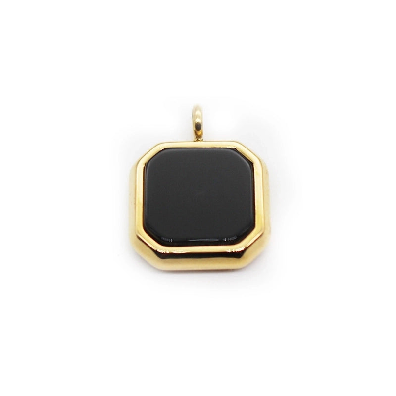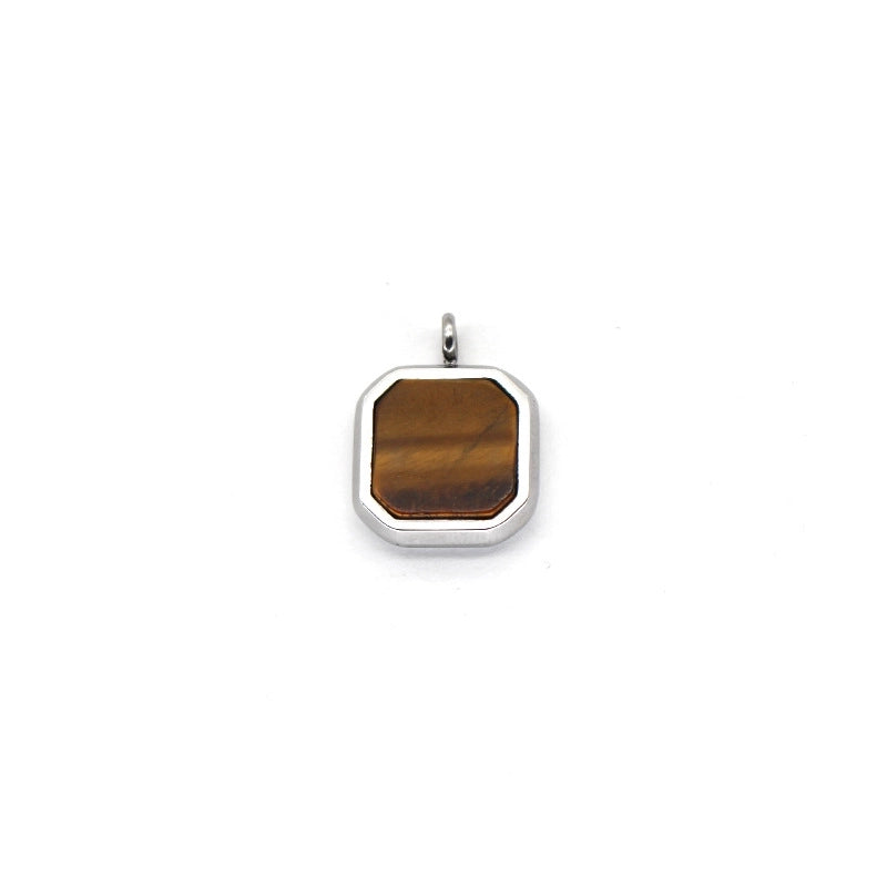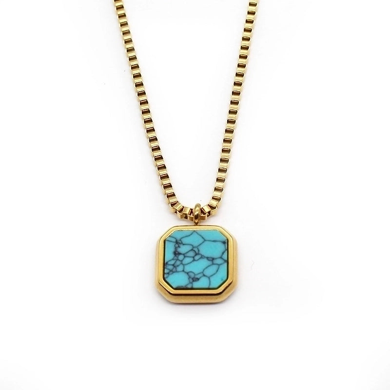 Retro Minimalist Square Titanium Steel Inlay Natural Stone Charms Pendant Necklace