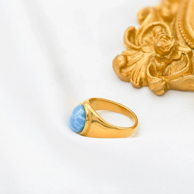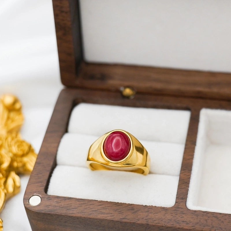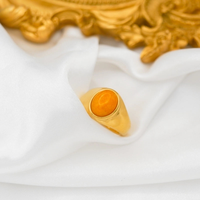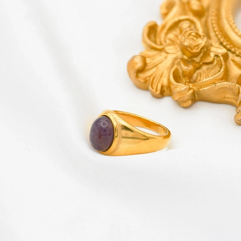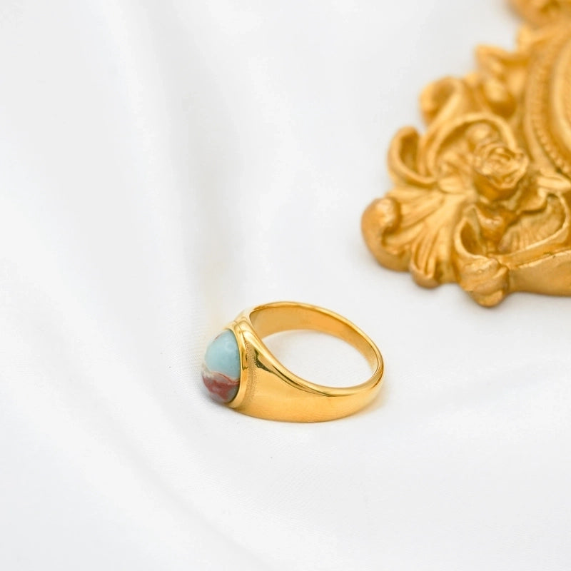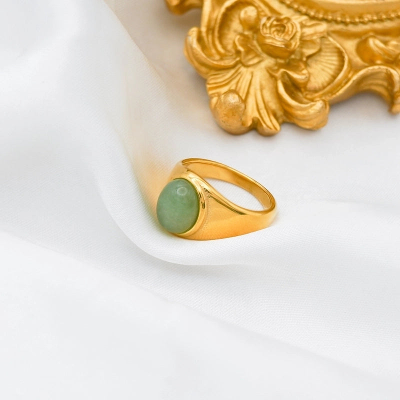 Retro Oval Stainless Steel Plating Inlay Agate 18k Gold Plated Rings