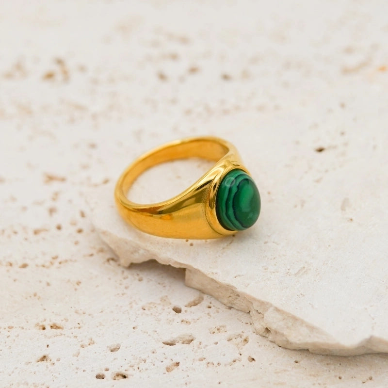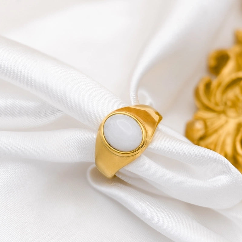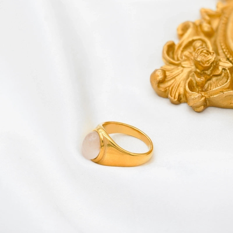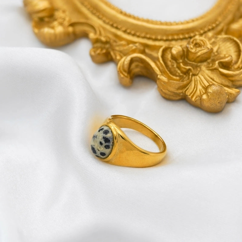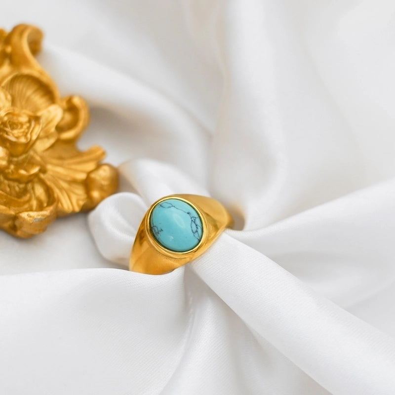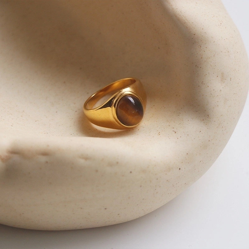 Retro Oval Stainless Steel Plating Inlay Agate 18k Gold Plated Rings