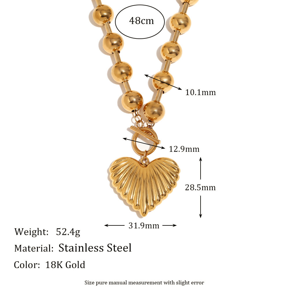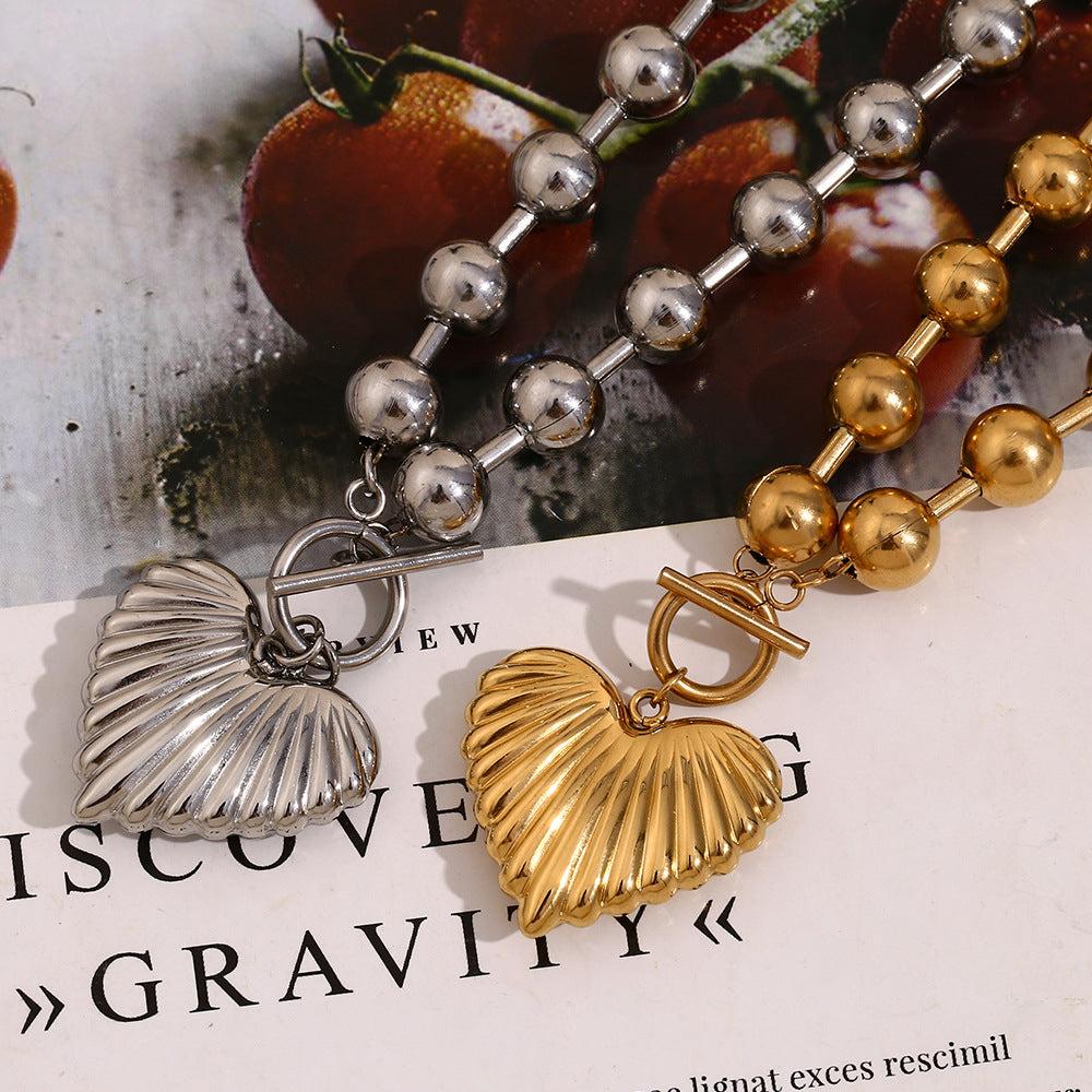 | Color | Ball Bead Love Ot Buckle Necklace-Gold, Ball Heart Ot Buckle Necklace-Steel Color |