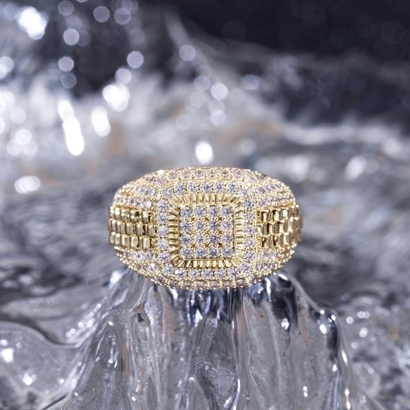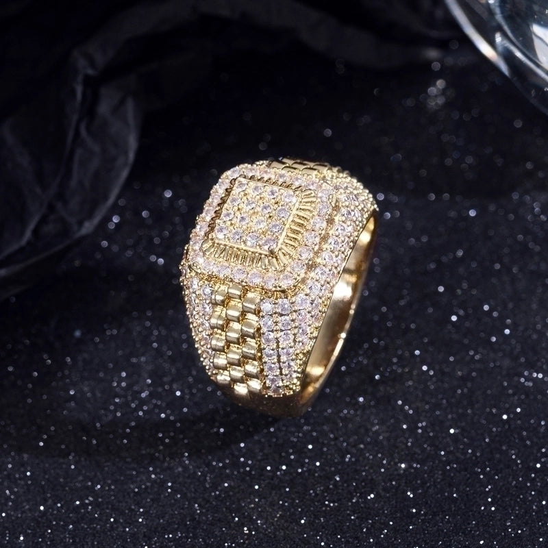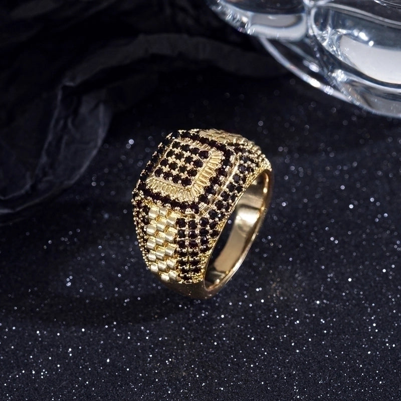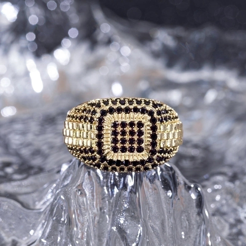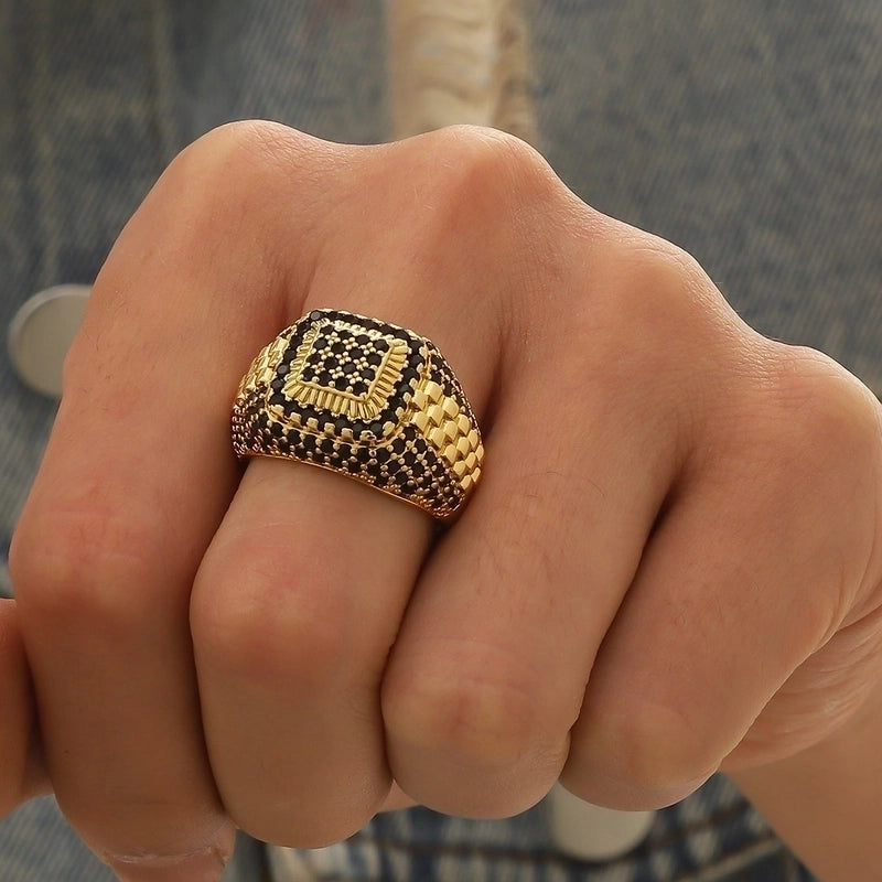 Retro Solid Color Copper Brass Plating Inlay Zircon 18k Gold Plated Men’s Rings