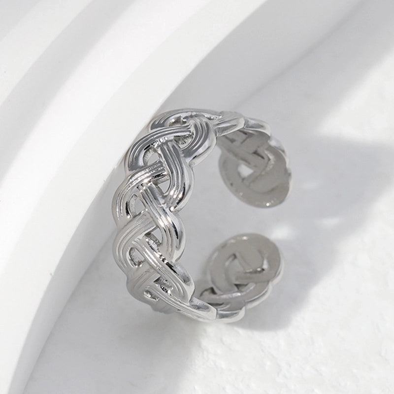 Retro Solid Color Stainless Steel Criss Cross Open Ring