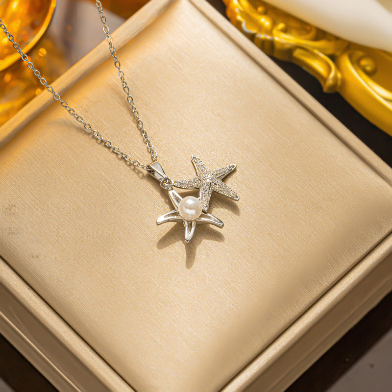 | Color | 845 Pearl Starfish Necklace Gold, 845 Pearl Starfish Necklace Silver |