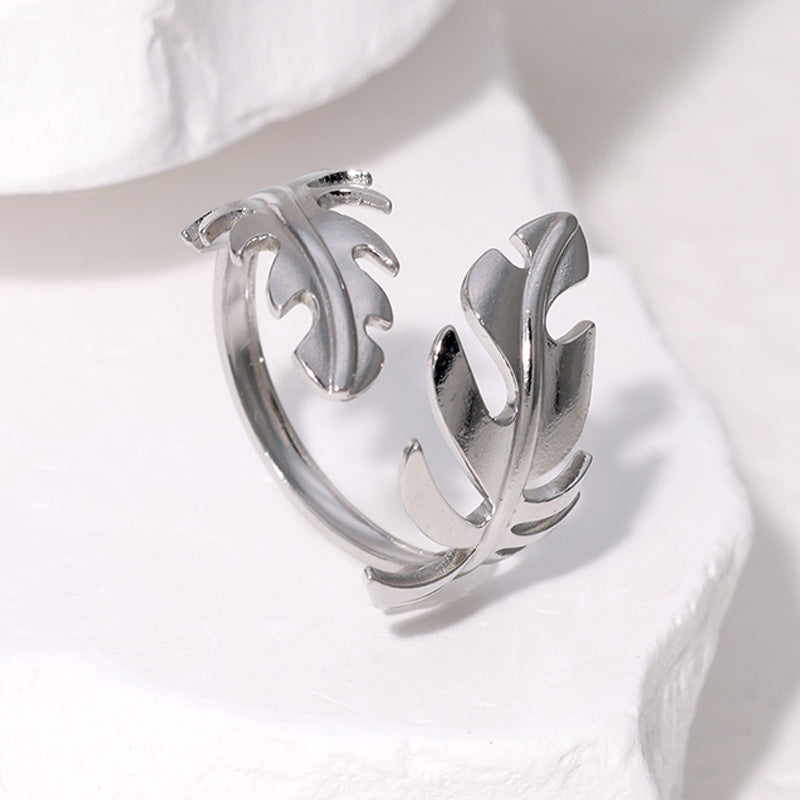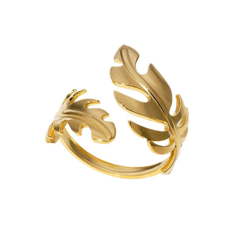 Rustic Open Ring Leaf Stainless Steel Electroplating Rings