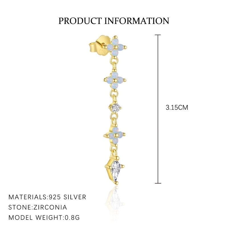S925 Sterling Silver Long Tassel Flowers Color Zirconium Stud Earrings For Women Niche Design French Fashion Ring Suit