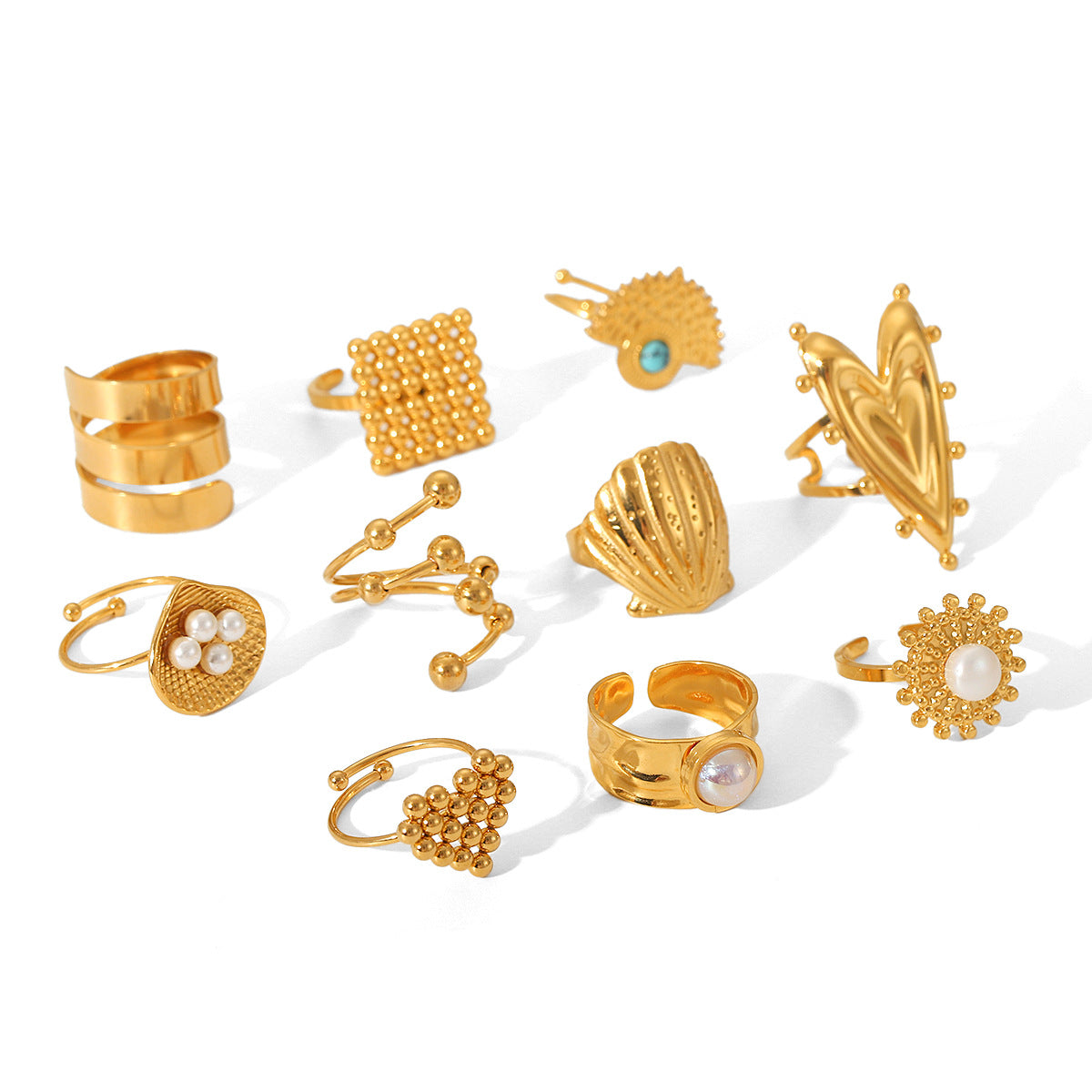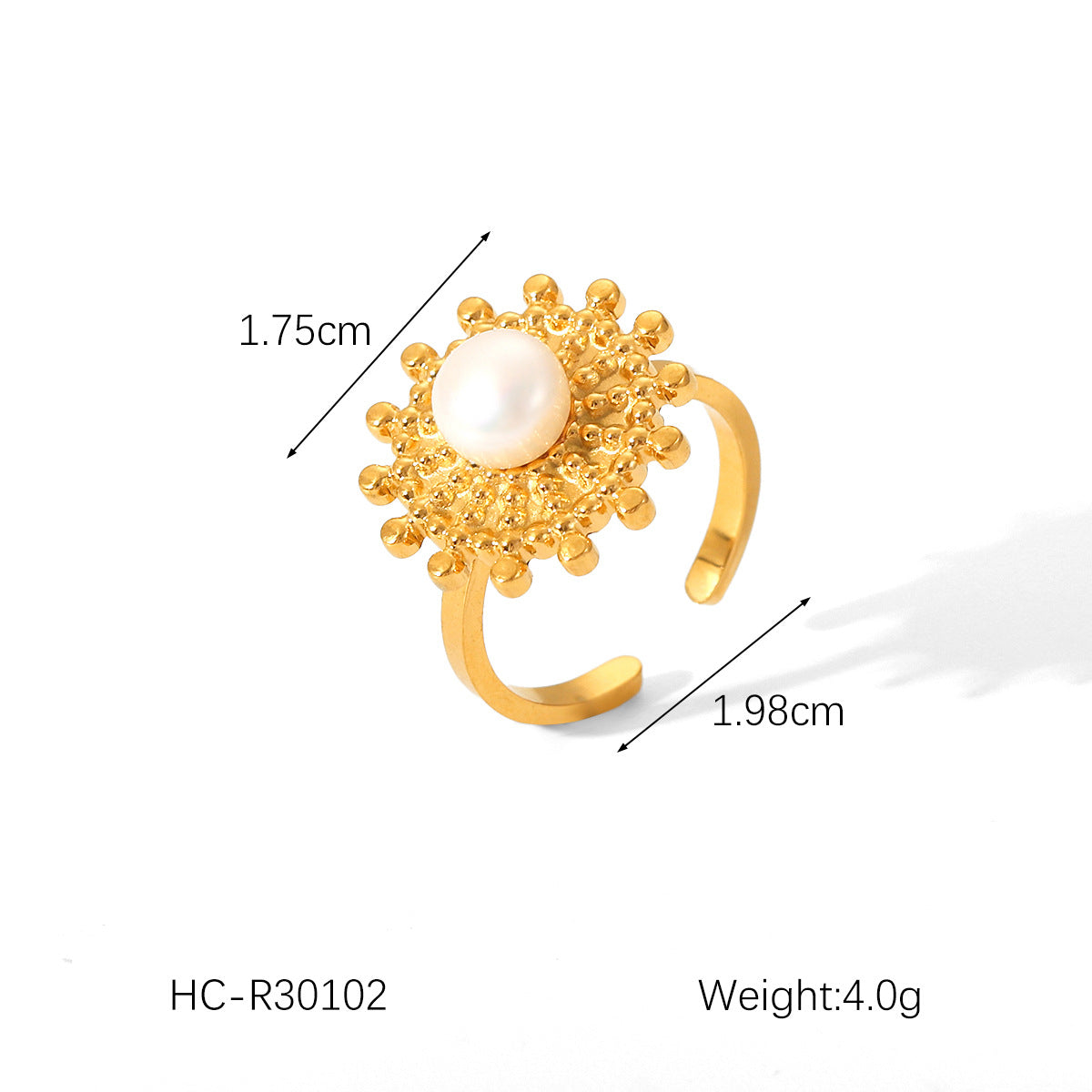 Shell Love Stainless Steel Ring Female Pearl Open Ring Titanium Steel Ring
