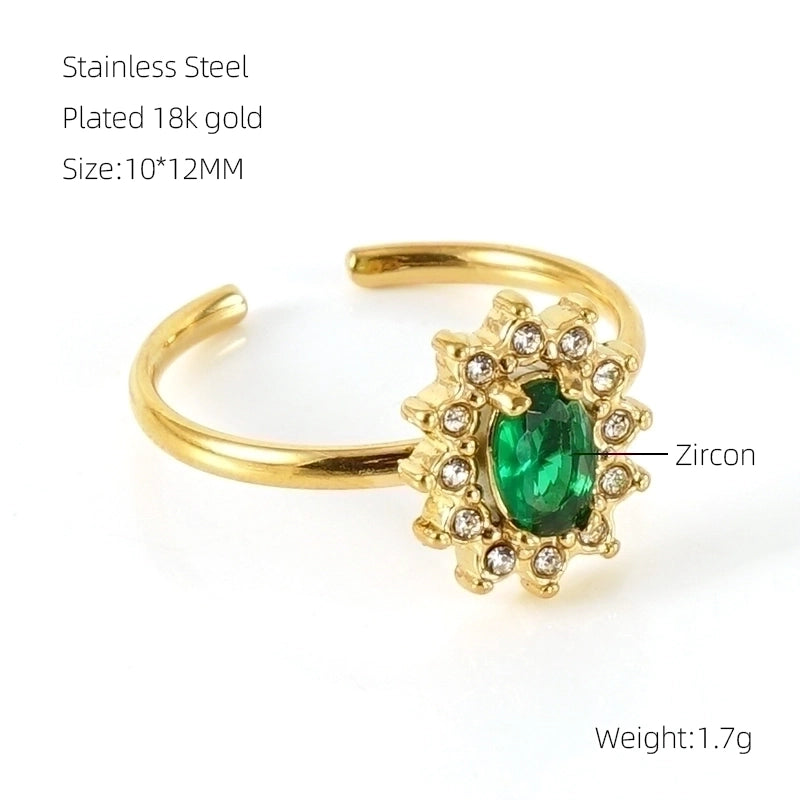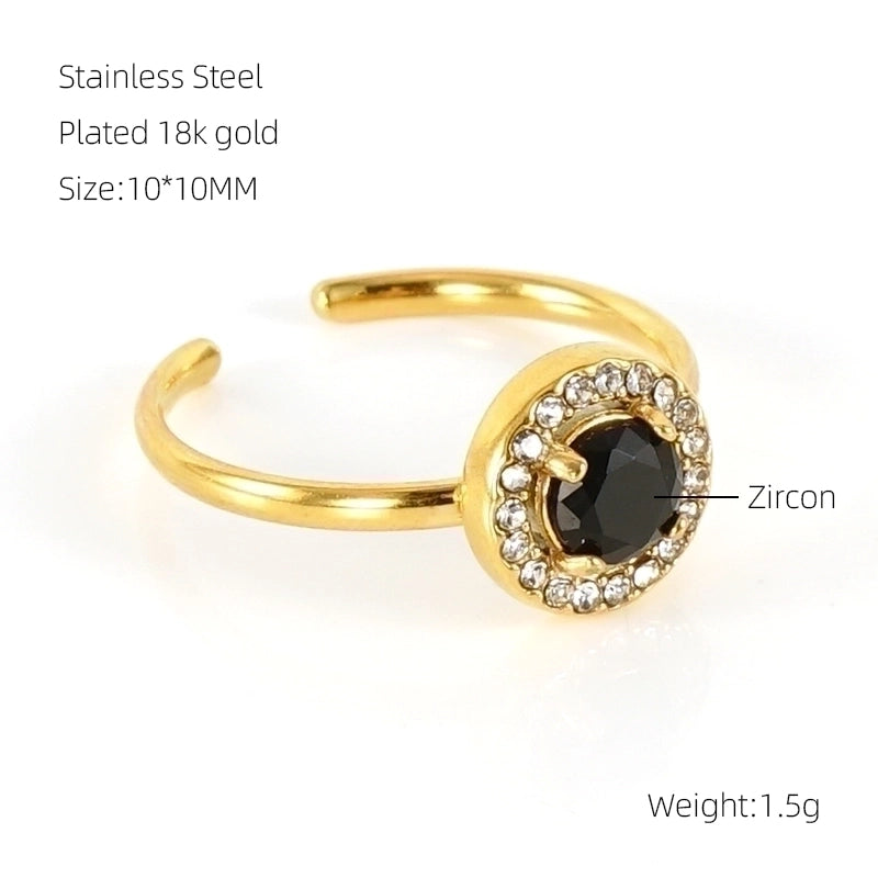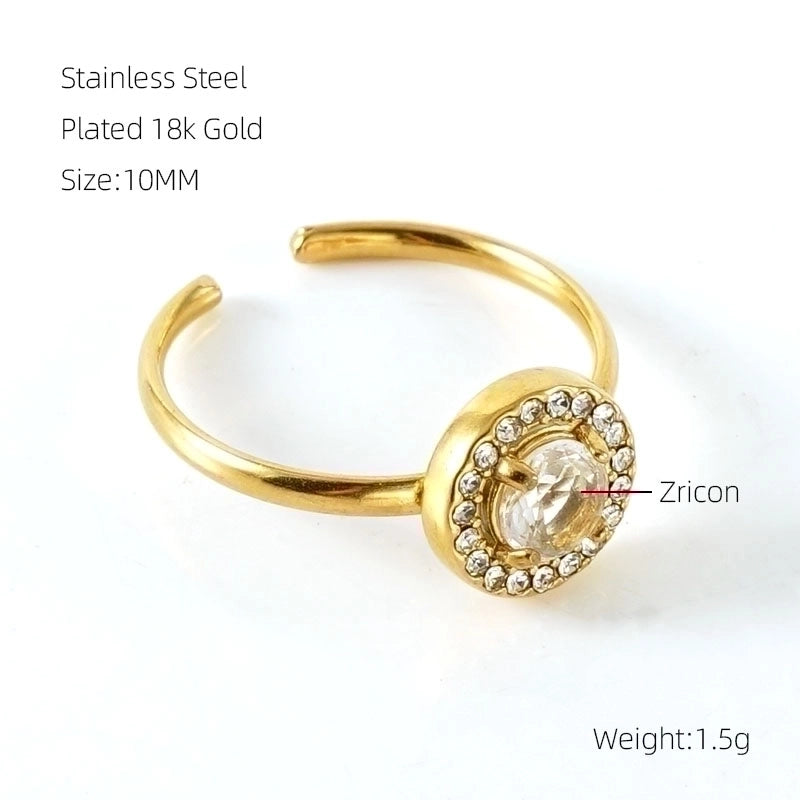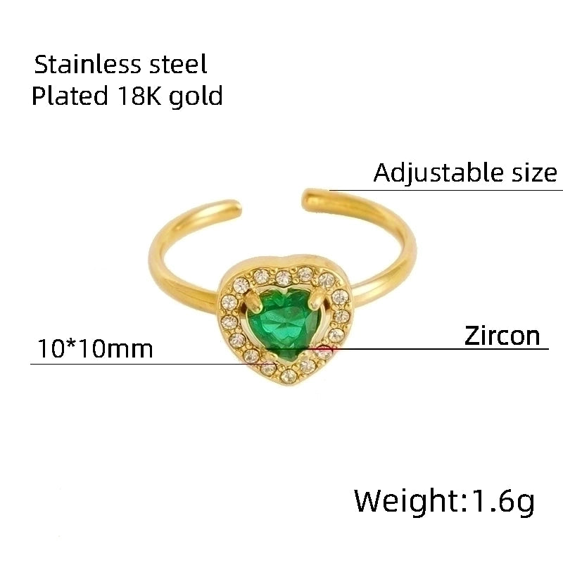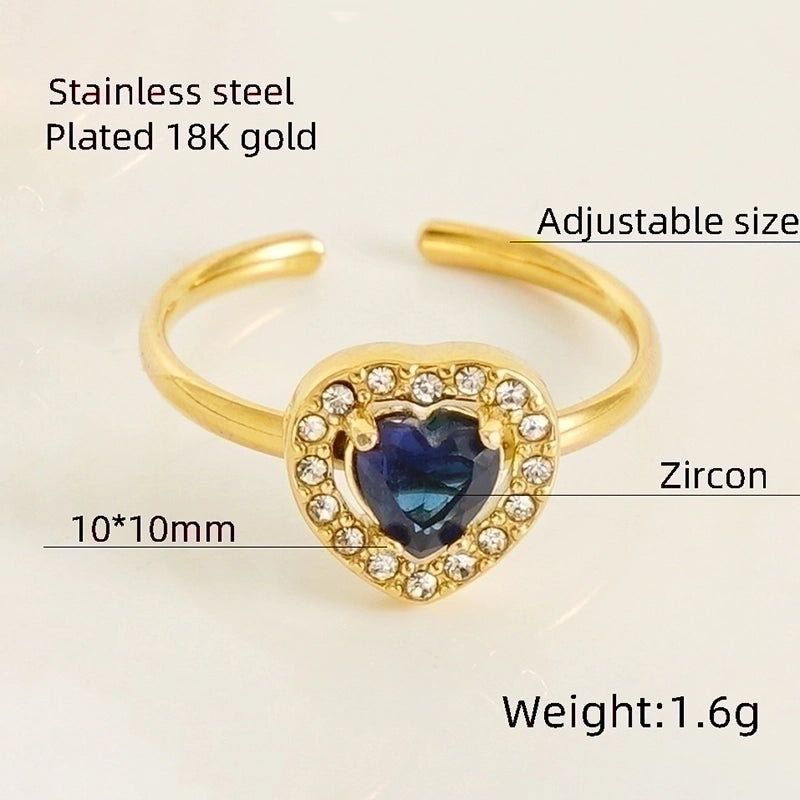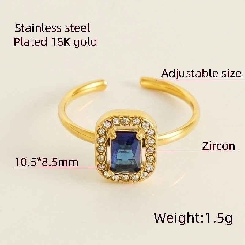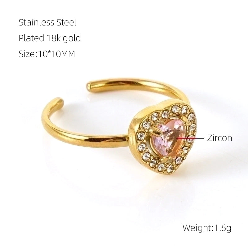 Stainless Steel 18K Gold Plated Shiny Plating Inlay Square Water Droplets Heart Shape Zircon Open Ring
