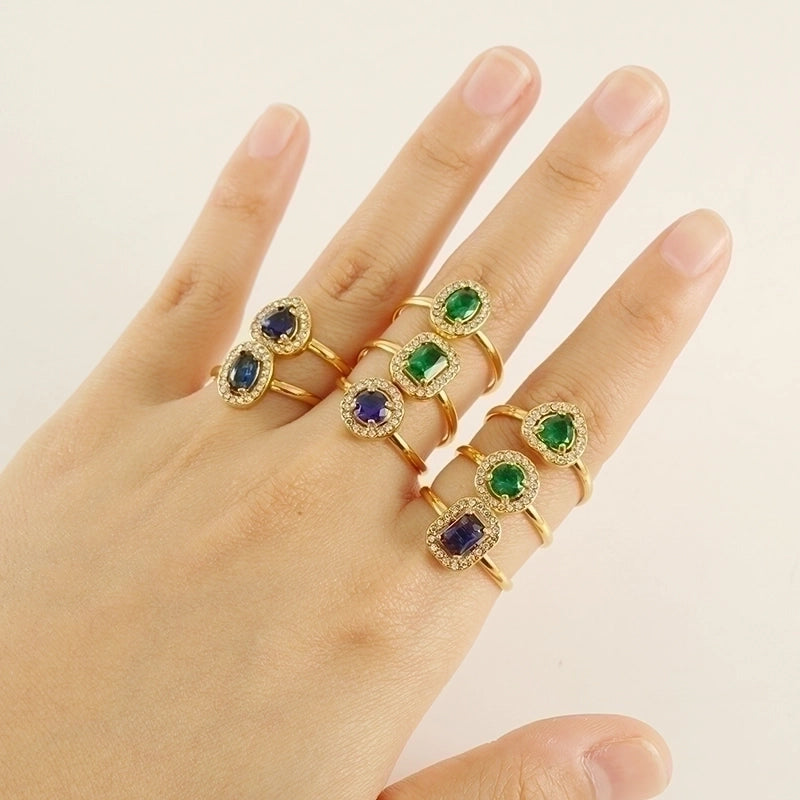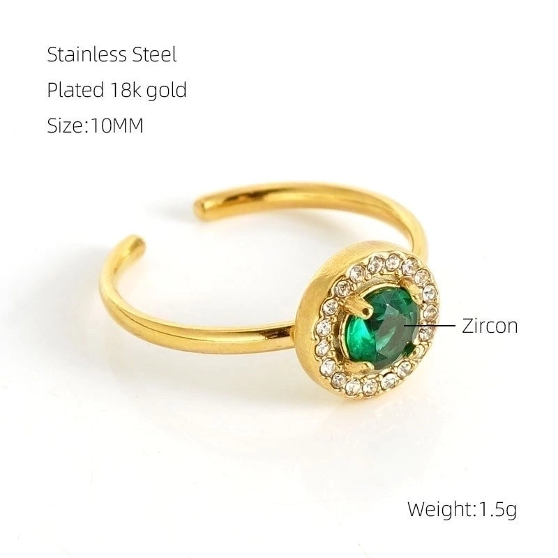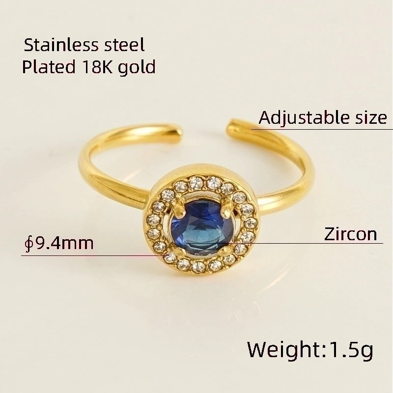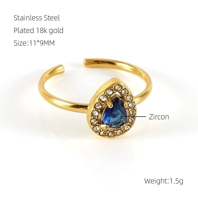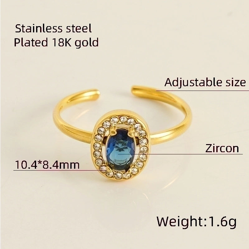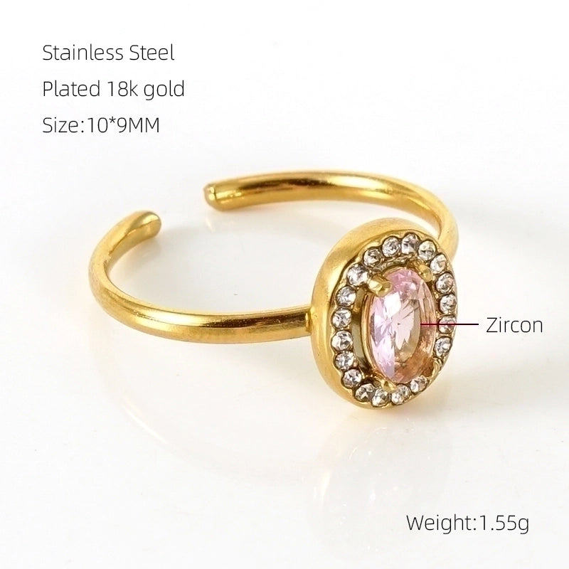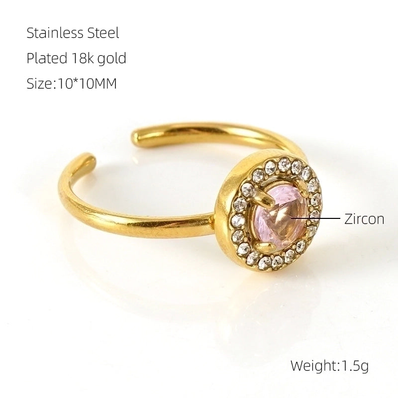 Stainless Steel 18K Gold Plated Shiny Plating Inlay Square Water Droplets Heart Shape Zircon Open Ring
