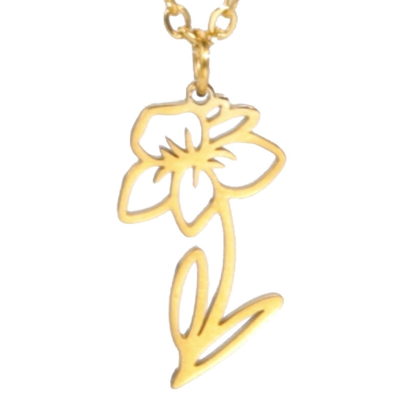 Simple 18k Real Gold Plating Non-fading Ten Birthday Month Flower 304 Material Diy Stainless Steel Pendant