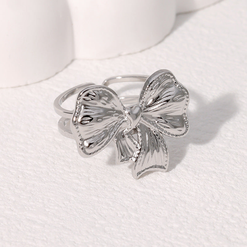 Simple And Versatile Open Ring Bow French Niche Stainless Steel Ring
