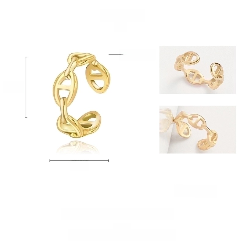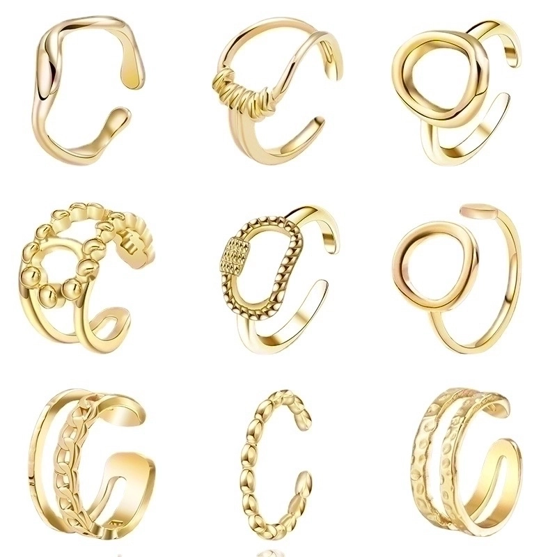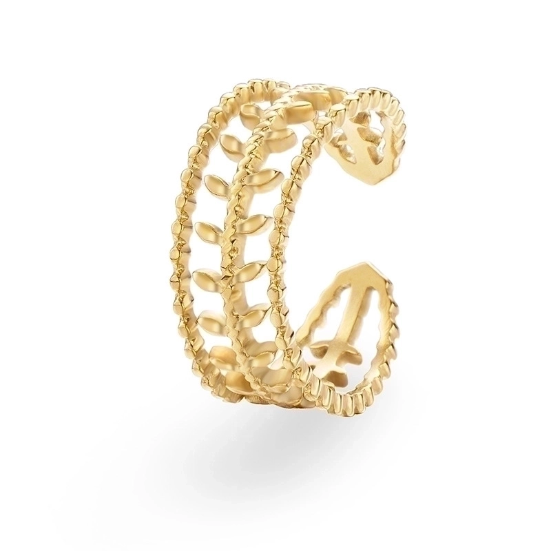 304 Stainless Steel 18K Gold Plated Elegant Retro Plating Geometric Leaf Heart Shape Open Rings