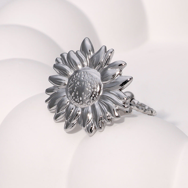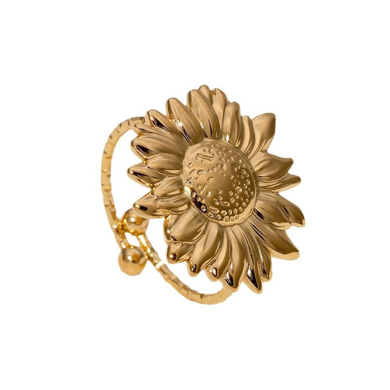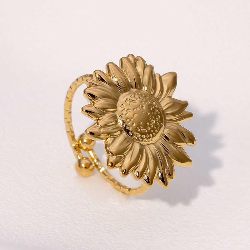 Simple Holiday Style Flower Sunflower Niche Design Gold-Plated Stainless Steel Ring Adjustable