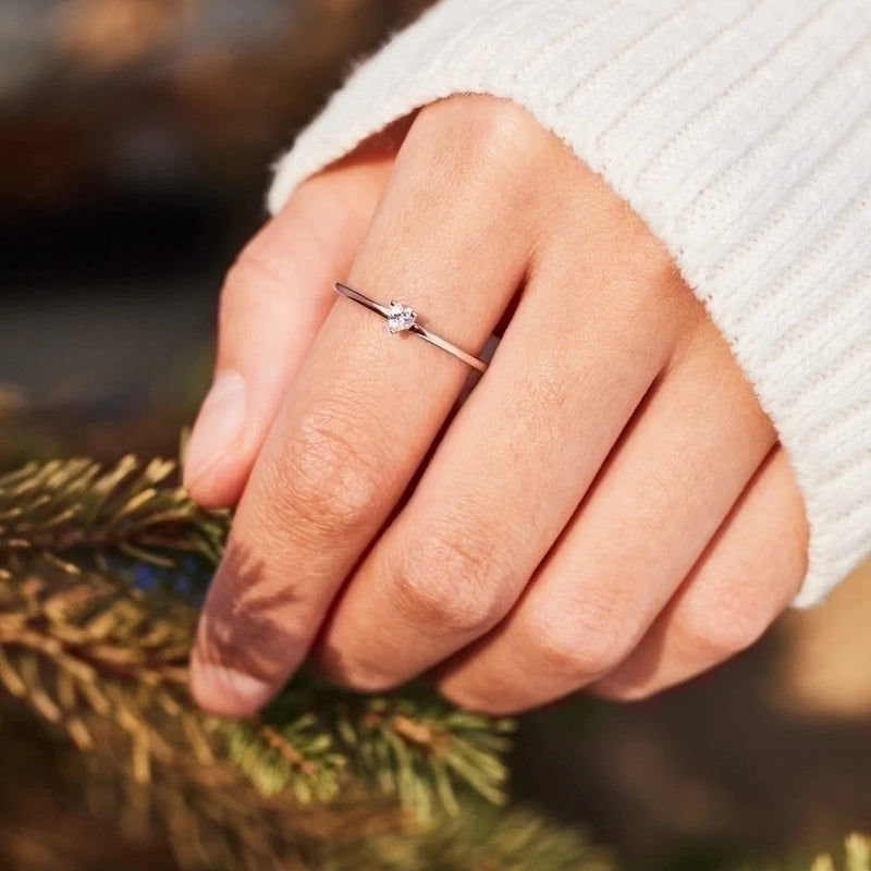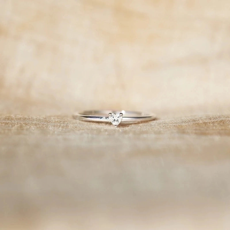 Minimalist Heart Shape Sterling Silver Plating Inlay Zircon Rings