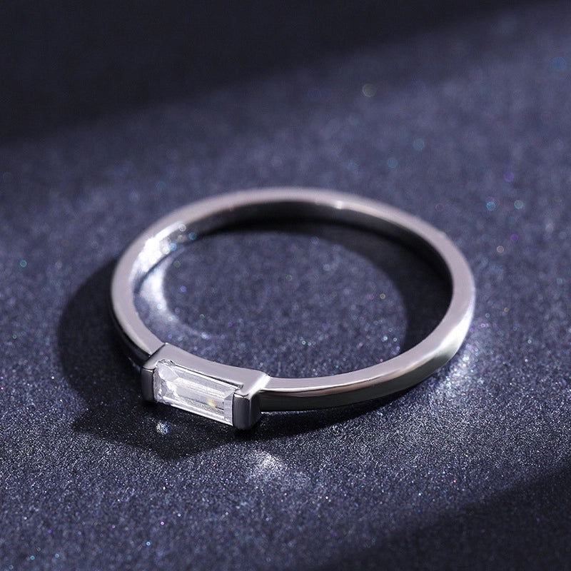 Minimalist Rectangle Silver Plating Inlay Zircon Rings 1 Piece