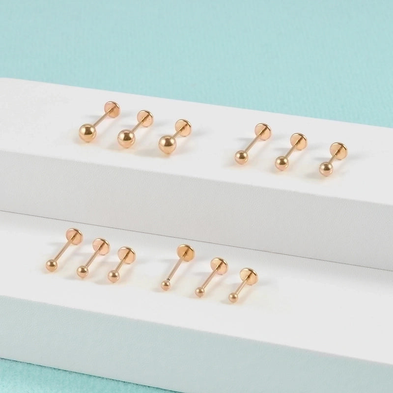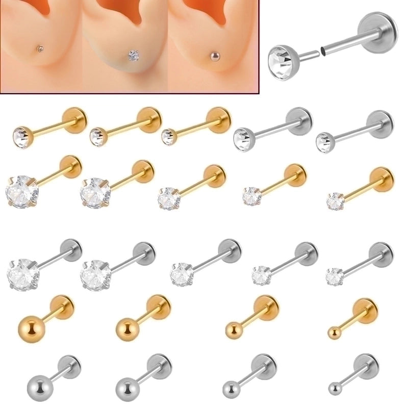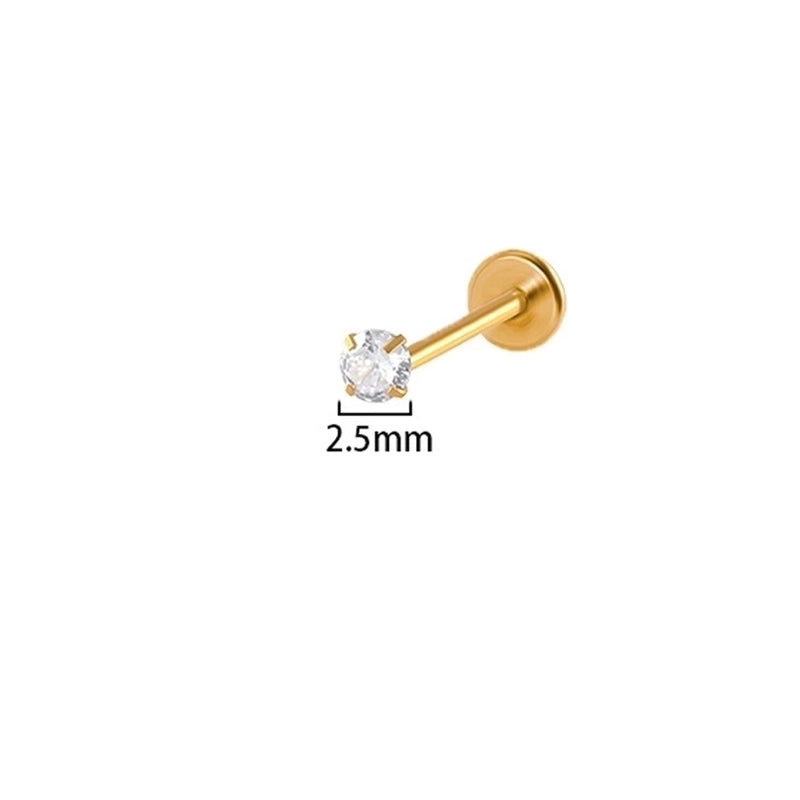 2 Pieces Lip Rings Minimalist Round 304 Stainless Steel Plating Rhinestones 18K Gold Plated